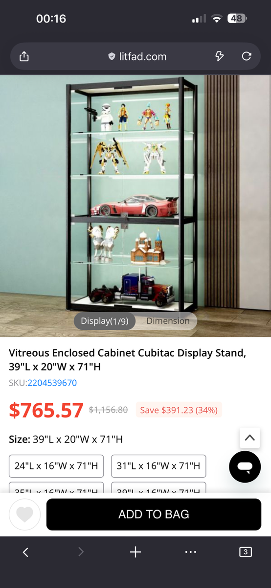 Vitreous Enclosed Cabinet Cubitac Display Stand, 39" L x 20" W x 71" H.