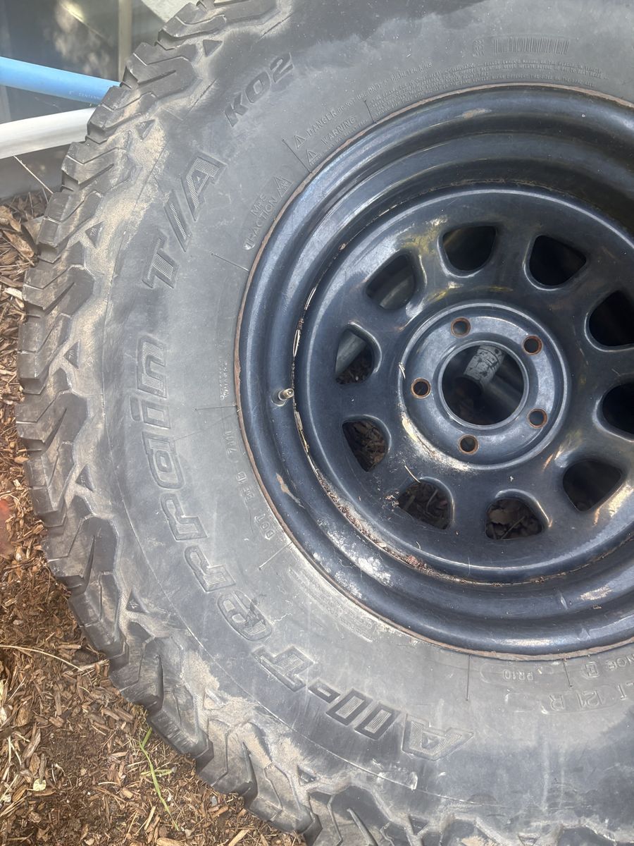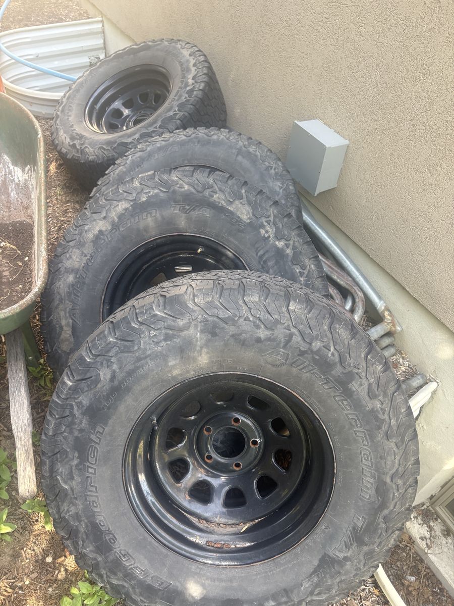 Bought new ones as I wanted to go a little bigger. BoughtJeep in 2017 or 2018 and they were new then I believe. Rims a little rugged from some light off roading. Come see. Live byBYU.