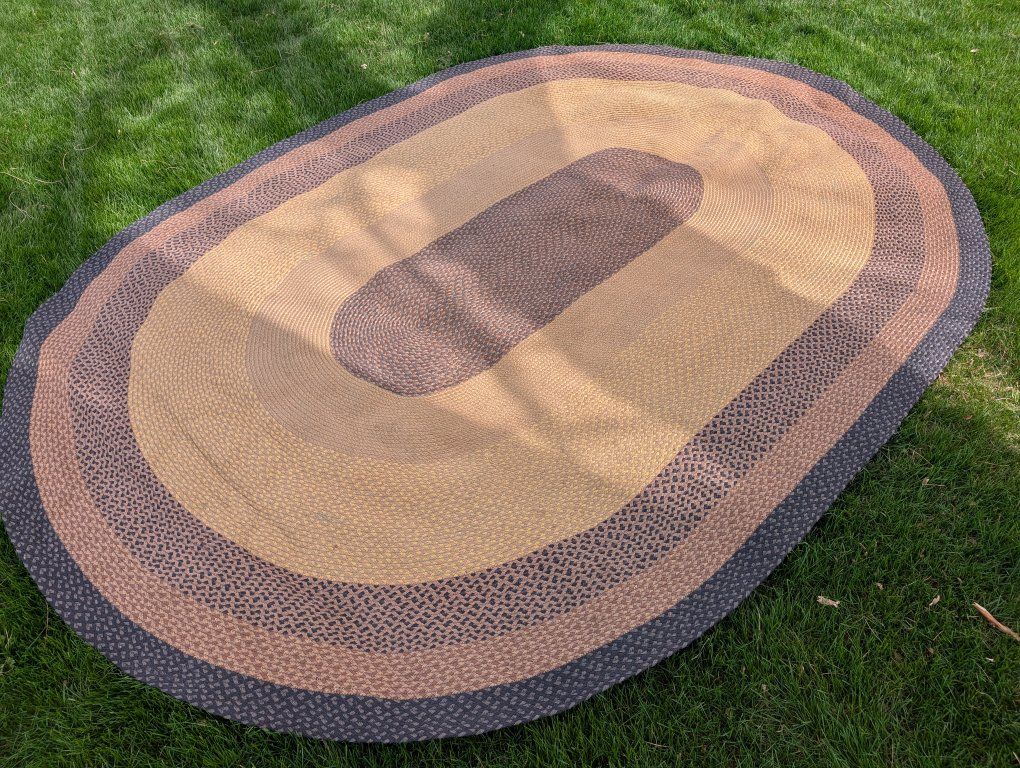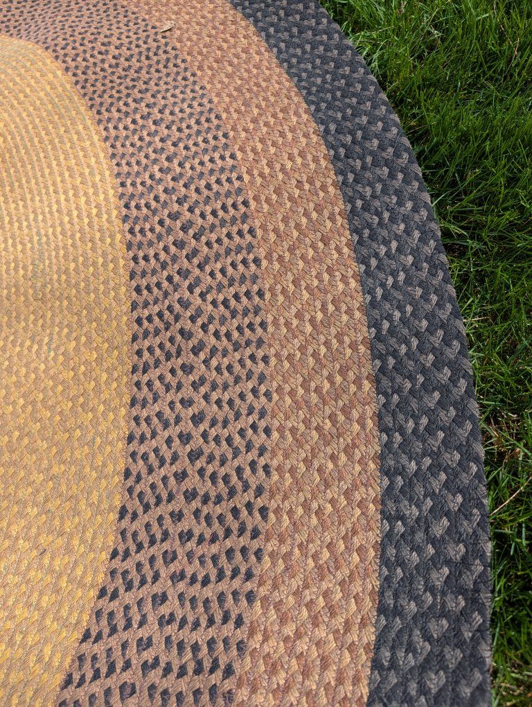 This is a beautiful woven 8-ft x 11 ft oval rug. I believe it was manufactured by Capel but unlike some of the other rugs we have this one does not seem to have a label so not positive. It is a tight weave and in good condition, very gently used in a spare room that didn't see much footwear or traffic.