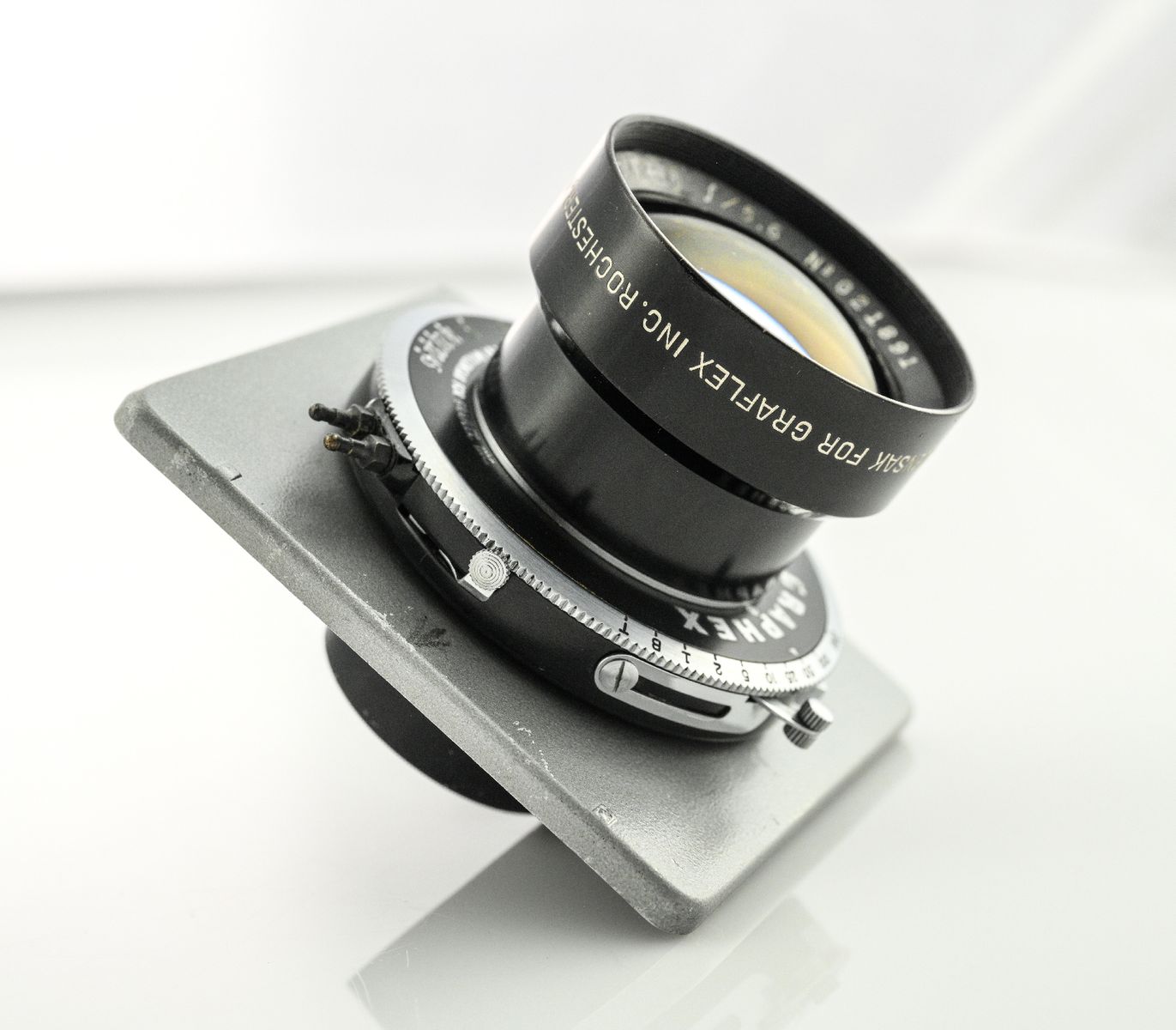 VenmoBeautiful classic lens, clean, clear inside and outside. No scratches, cleaning marks, dust or fungus inside. I have used it for portait photography on my 4x5 Speed Graphic Camera (see photo) and Sinar 4x5 View Camera. Iris and shutter are operating as they should, thugh the shutter speeds are slower in the slow range 1 - 1/10 sec. It comes mounted on a standard lens board as shown in the pictures. Shipping: $10.00