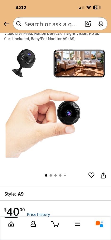 PayPalA9 YSXLite APP Mini Camera Without Wire 1080P Wireless Video Night Vision Camera with Magnetic Holder CMOS Sensor