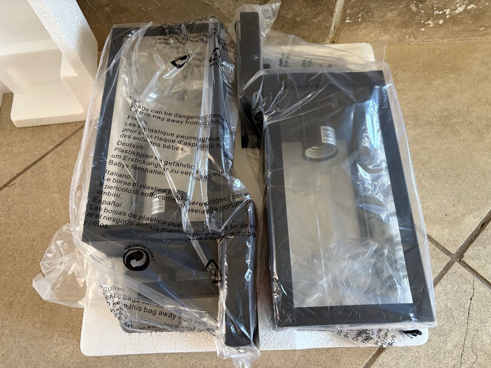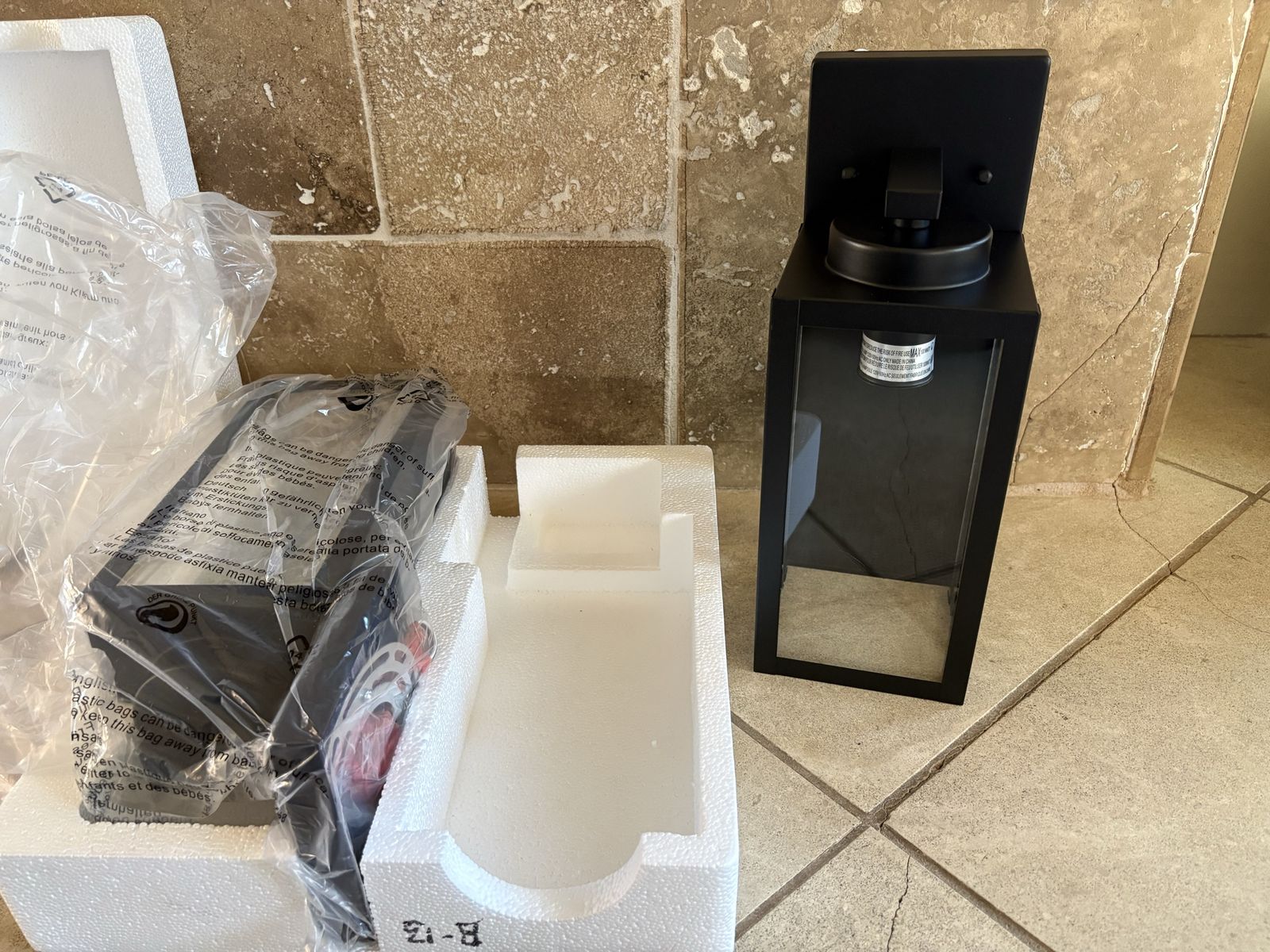 I have 2 new matching outdoor wall light fixtures. They have never been installed. My friend bought them without realizing that they would hang down over her house number. They are 13 inches tall, 4 3/4 inches wide and 5 5/8 inches deep. The price is for both of them together. They have the plastic wrap and styrofoam but not the box. See my other ads for jewelry, artwork, home decor and more.
