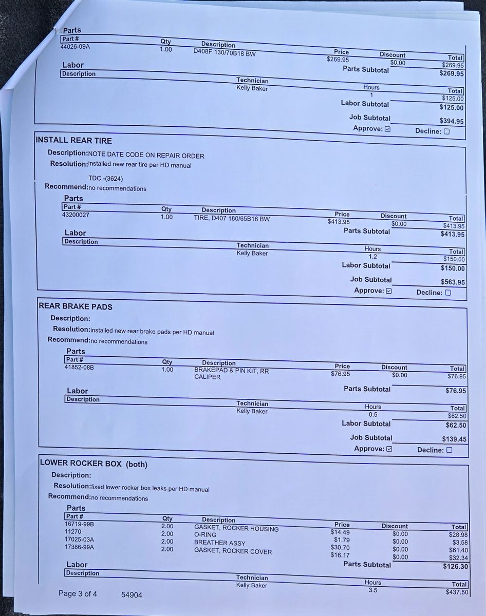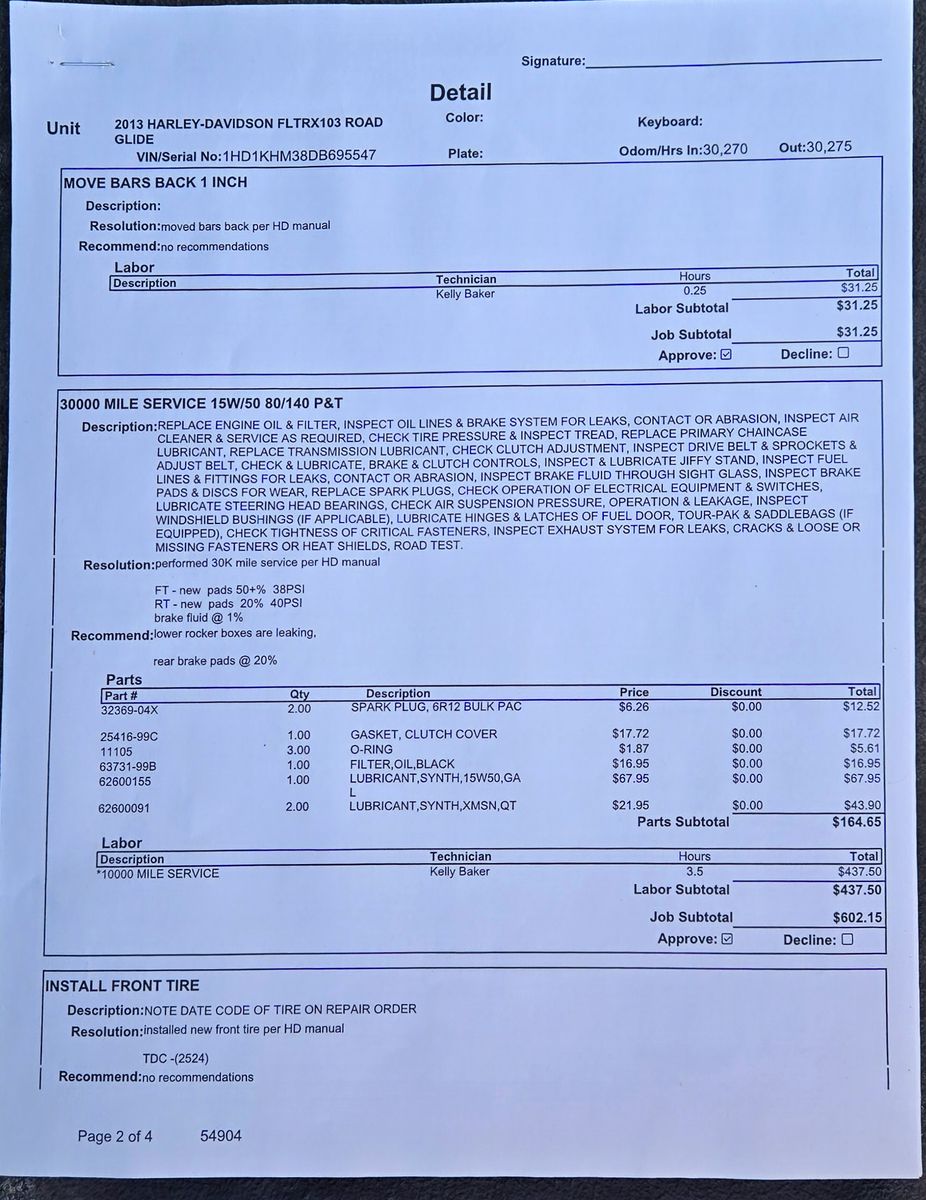 First of all, I just had this bike gone through, top to bottom, at Snake Harley Davidson in Twin Falls, ID. Clean bill of health, fresh oil and fluids, brand new tires. I've ridden it about 700 miles since then. Bike has 31,100 miles
