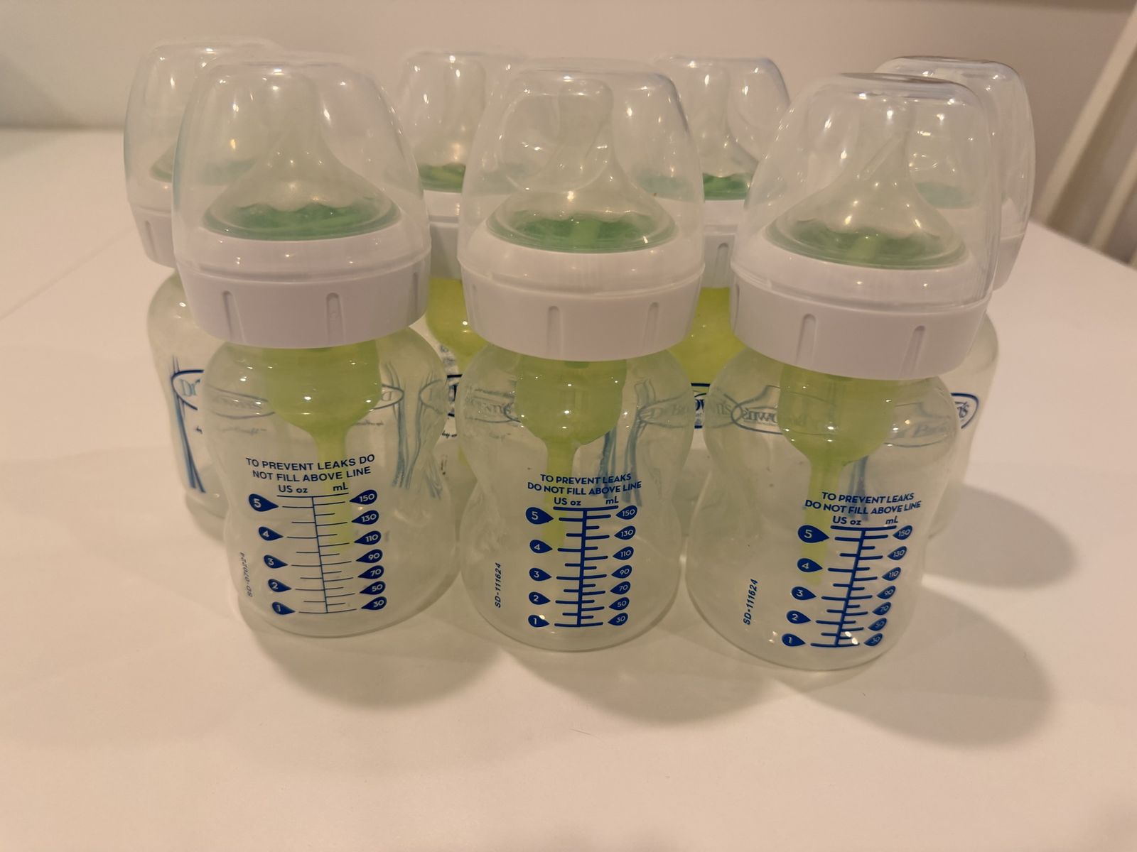 VenmoThis is set of 7 wide-neck 5 oz plastic baby bottles. They each have a level 1 slow flow nipple on them.