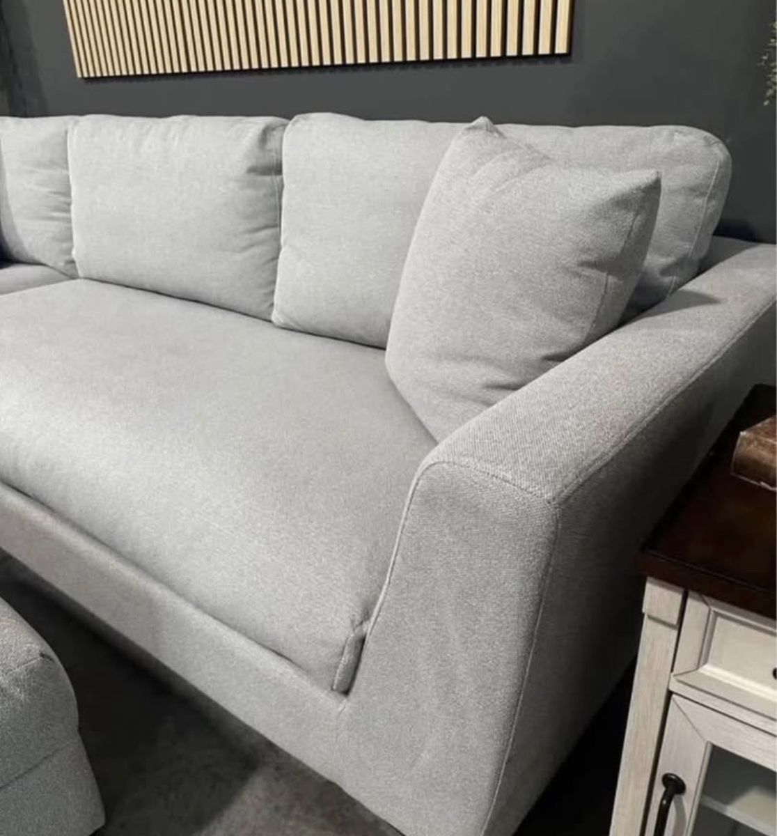 SUMPTUOUS FEATHER & FIBER BLEND Experience the plush, downy support of our deluxe cushions, featuring a perfect mix of feather and fiber filling. Sink into unmatched comfort with extra deep cushioning. EASY-CLEAN STAIN RESISTANCE Worry less about spills with our easv-to-maintain stain-resistant fabric.