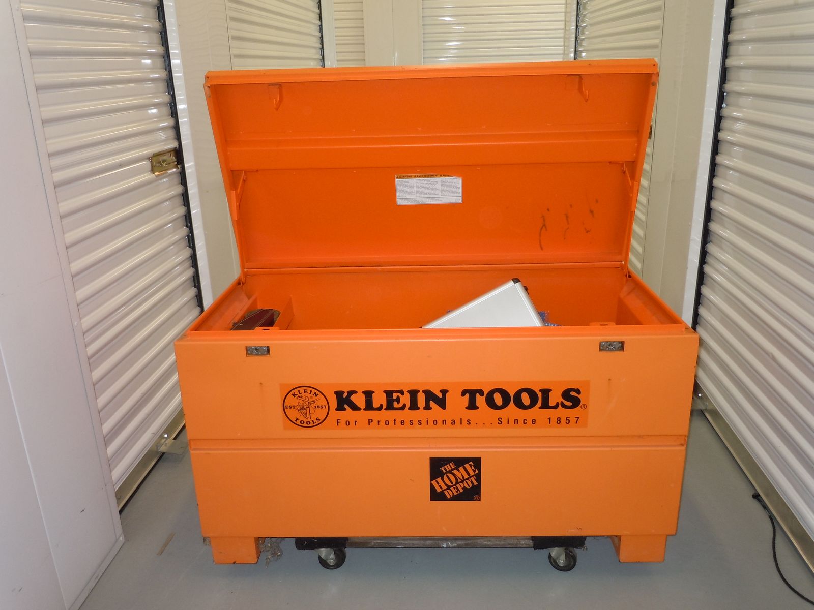 Also, Klein Tools steel toolbox. 48 IN long x 24 IN wide x 29 IN tall (approximately). Very good condition. Will have all items removed from box. Selling for $ 275.00.