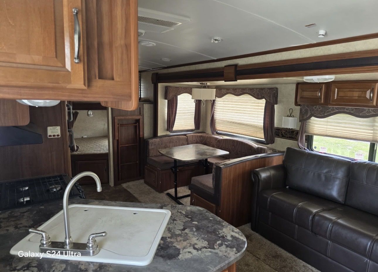 ️ Private front bedroom with upgraded Tempur-Pedic queen mattress ️ Large slide-out living area ️ Big rear bathroom ️ Full kitchen (fridge, stove, oven, microwave) ️ Couch converts to bed ️ Dinette converts to bed ️ Full-size bunk beds ️ Indoor & outdoor shower ️ Power awning (minor wear) ️ AC & heat work great ️ Tons of storage