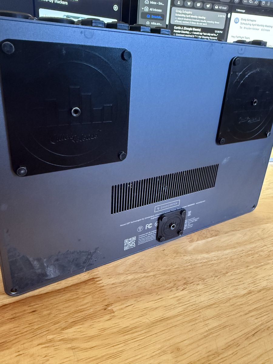 Has quick release plates stuck to the bottom by the previous owner. Can be removed without damage.