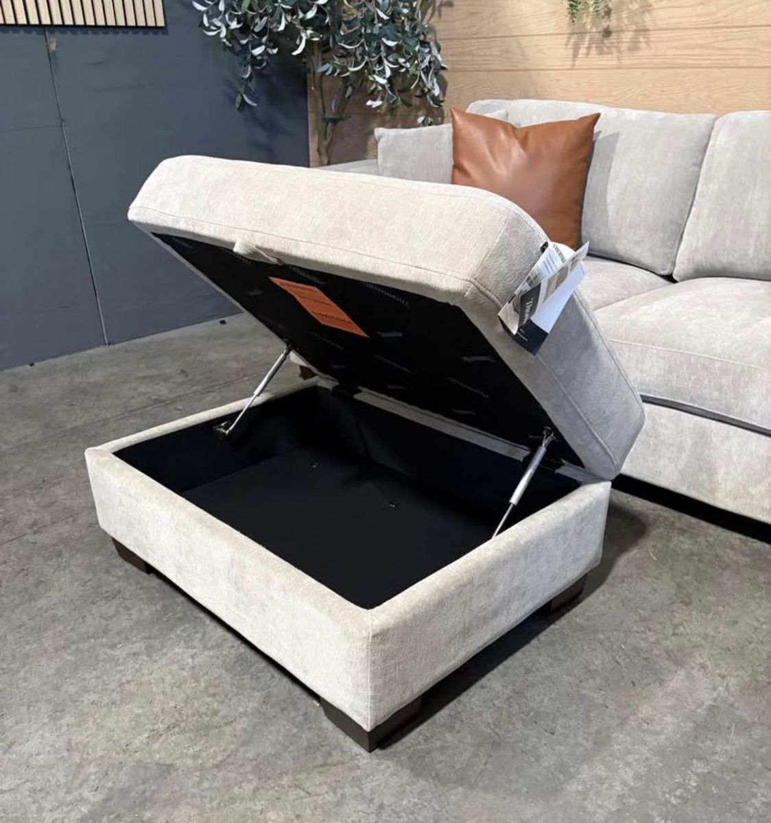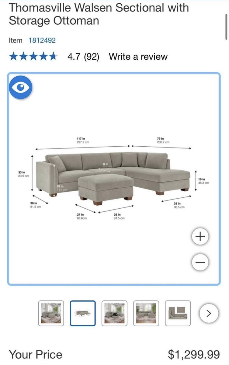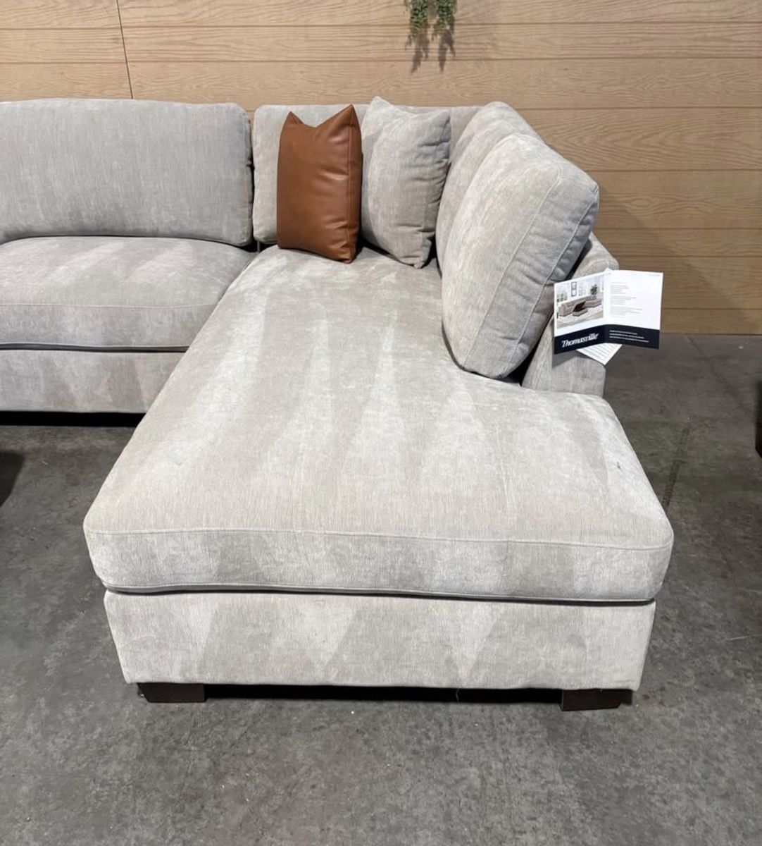 WHY YOU WILL LOVE THIS SECTIONAL... Transform your living room with the Thomasville Walsen Sectional Chaise with Storage Ottoman. Luxurious, soft polyester fabric and firm seat cushions offer the perfect blend of comfort and support. The modern track arm and solid wood tapered legs add a touch of elegance, while the lounging chaise and storage ottoman provide unmatched versatility. With two stylish accent pillows and practical attached cushions, this sectional is designed for both beauty and functionality. Enjoy ultimate relaxation and chic style with Thomasville.