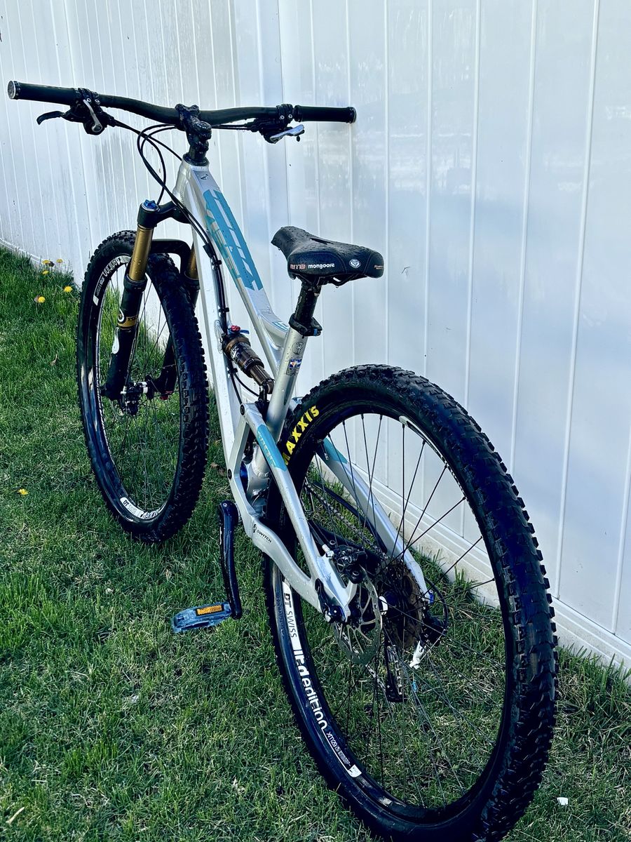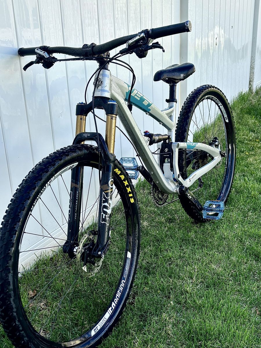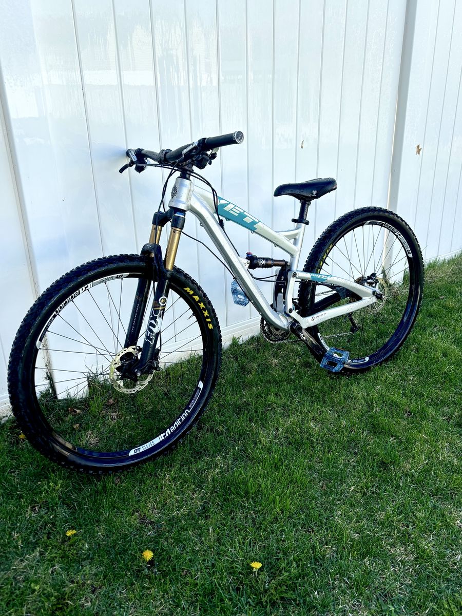 Perfect for your first mountain bike or just an upgrade—handles any trail, rides smooth, and everything works perfectly. No cracks, dents, or issues. Tires, brakes, and suspension are all in great shape, I have used it from when I was 5,5 and I am now 5,10 and it has never felt too small.