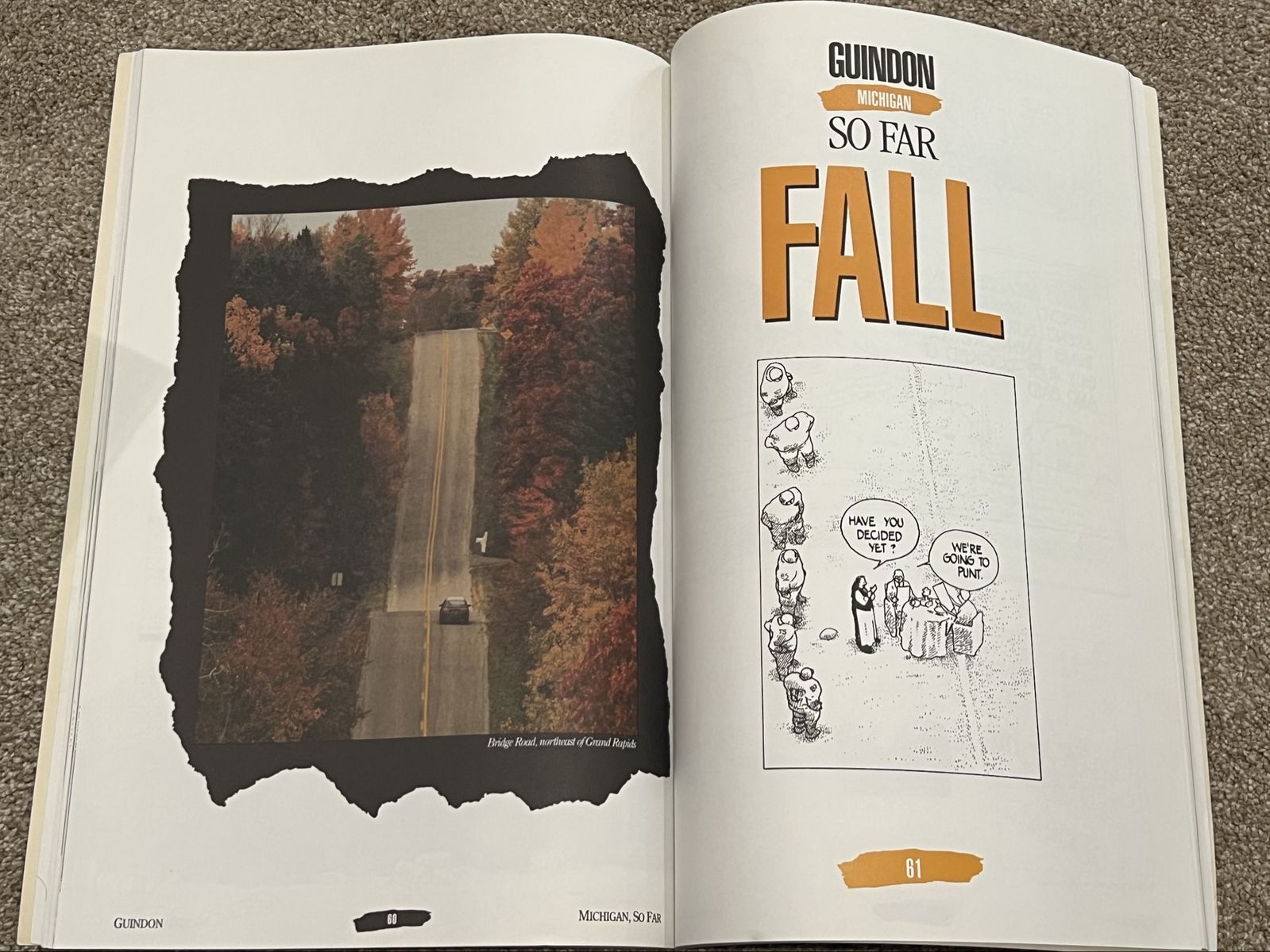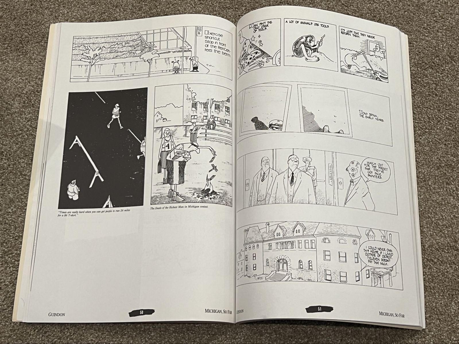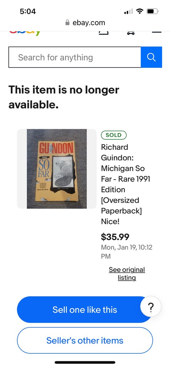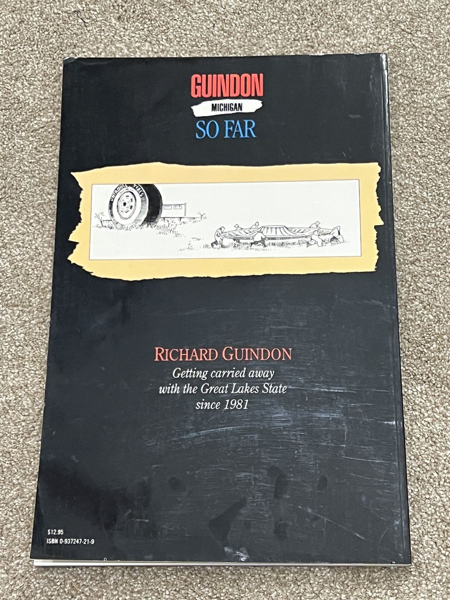 VenmoGuindon: Michigan So Far by Richard Guindon. Publisher: Detroit Free Press. A collection of cartoons featuring various themes, including wildlife like beavers and fish. Book is oversized 11x17 format. Sold on eBay for $35 plus tax and shipping. Tiny bend on top corner. Pick up in Draper. Pet and smoke free home. Cash or venmo. $30. listed for a client