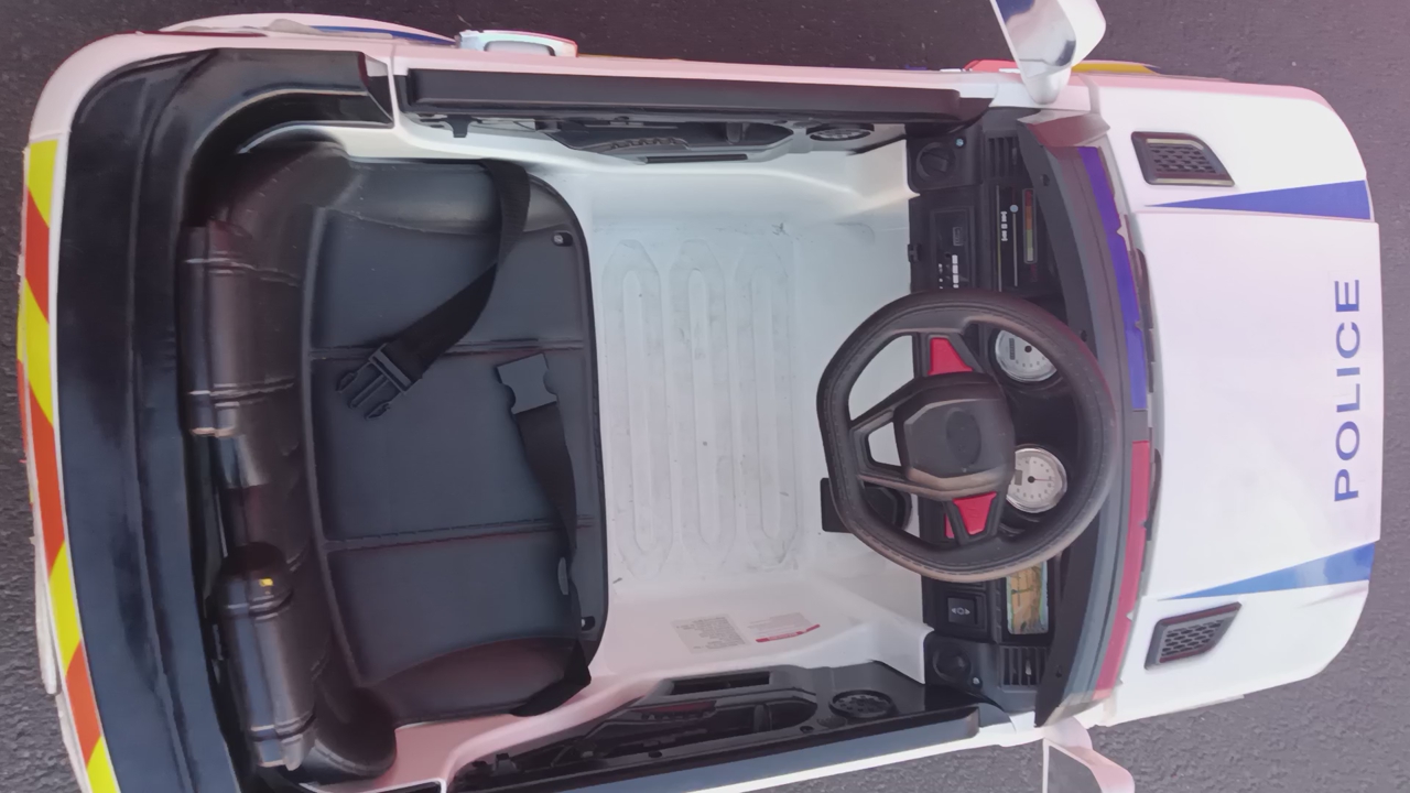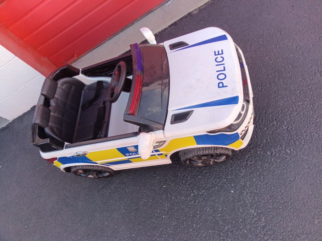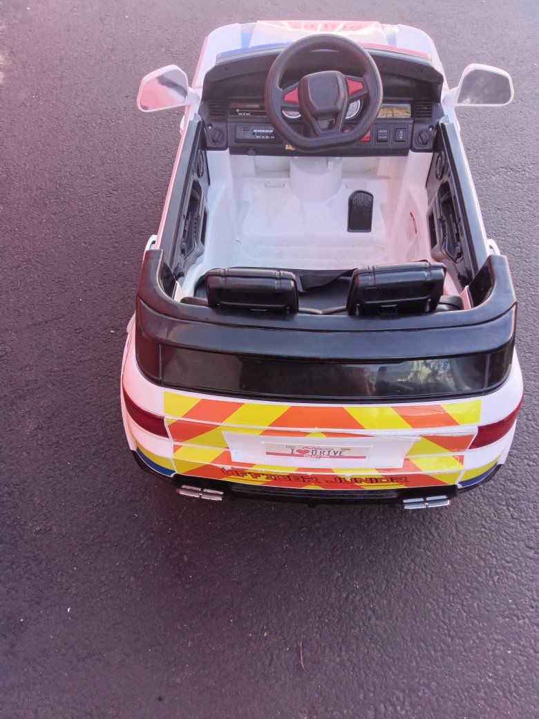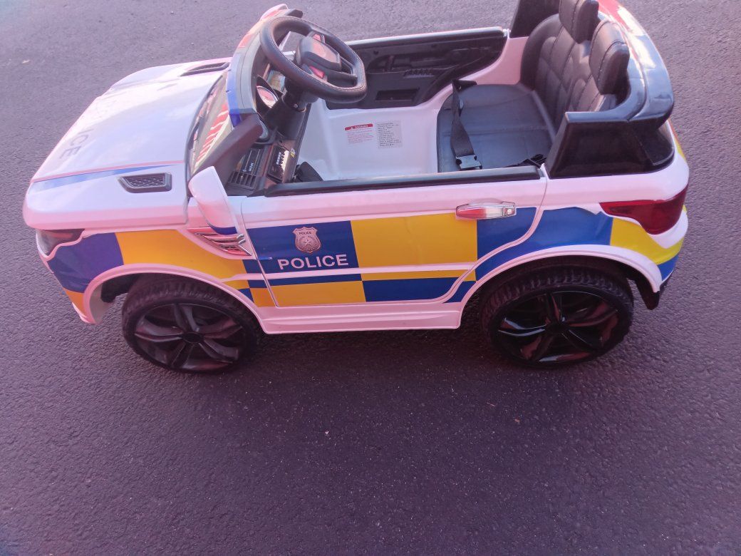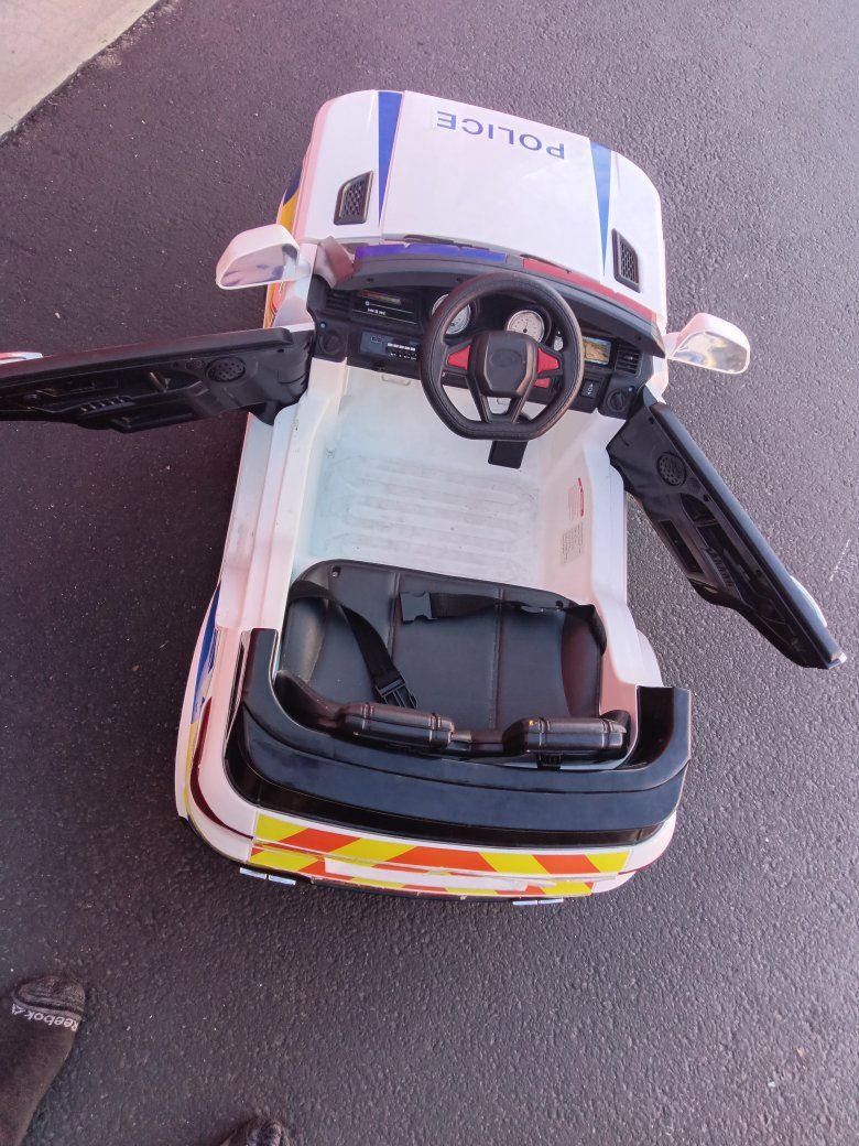 Kids Police Patrol Truck comes with charger and has the more expensive replacement battery in it not sure how long it'll last running strong right now though everything works as it should other than it's missing the TB radio handheld microphone replacement batteries around as cheap as $19.95 and as much as $50 it has the $50 one in it that is still good right now! All the lights light up the siren goes off way fun for the kids! These new cost about $250