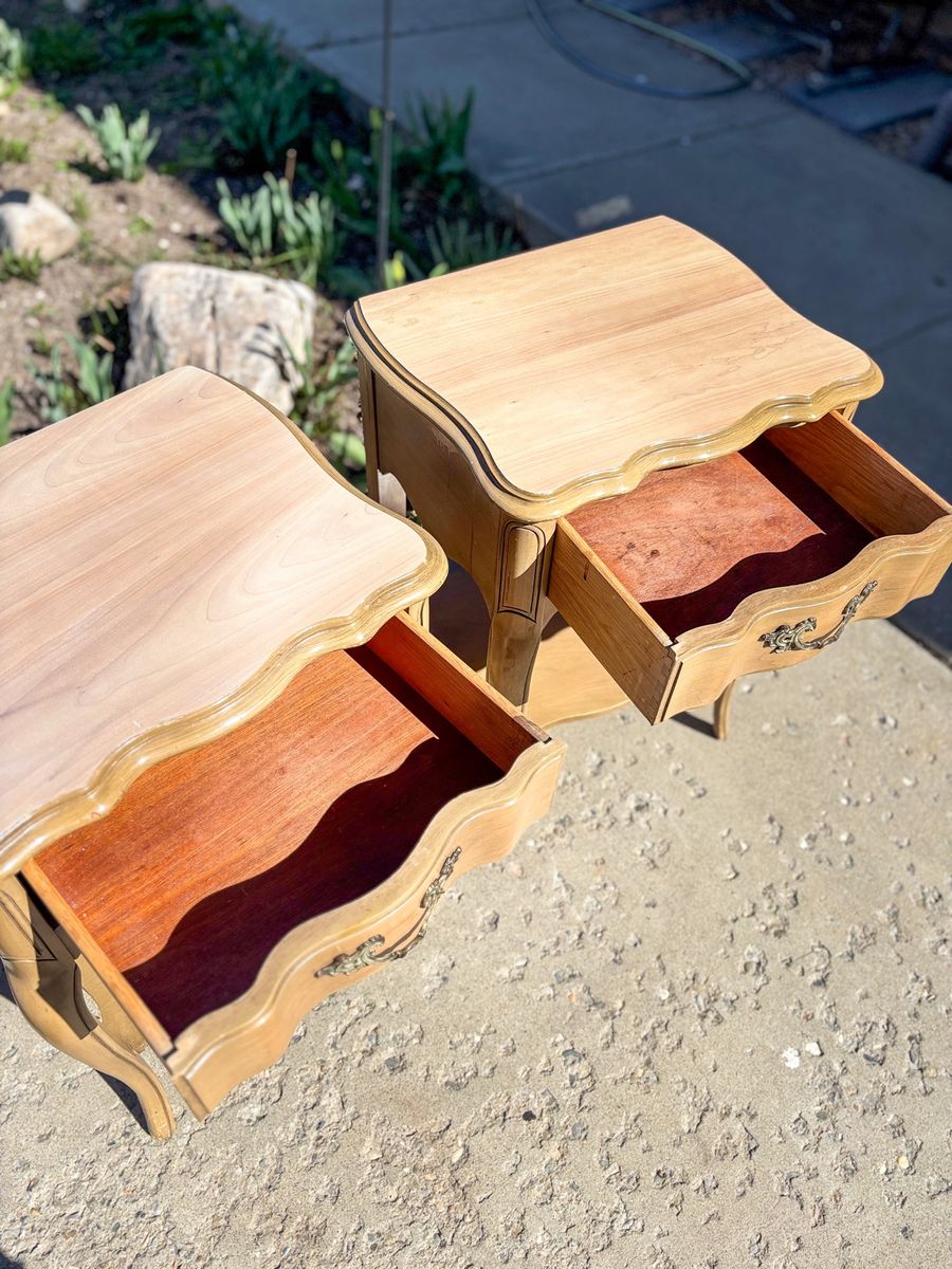 VenmoThese beauties need a refresh or can be used as is. I was going to refinish them but I don’t have time. I also have a matching dresser in other listings. Drawers work great and the dimensions are in the pictures.