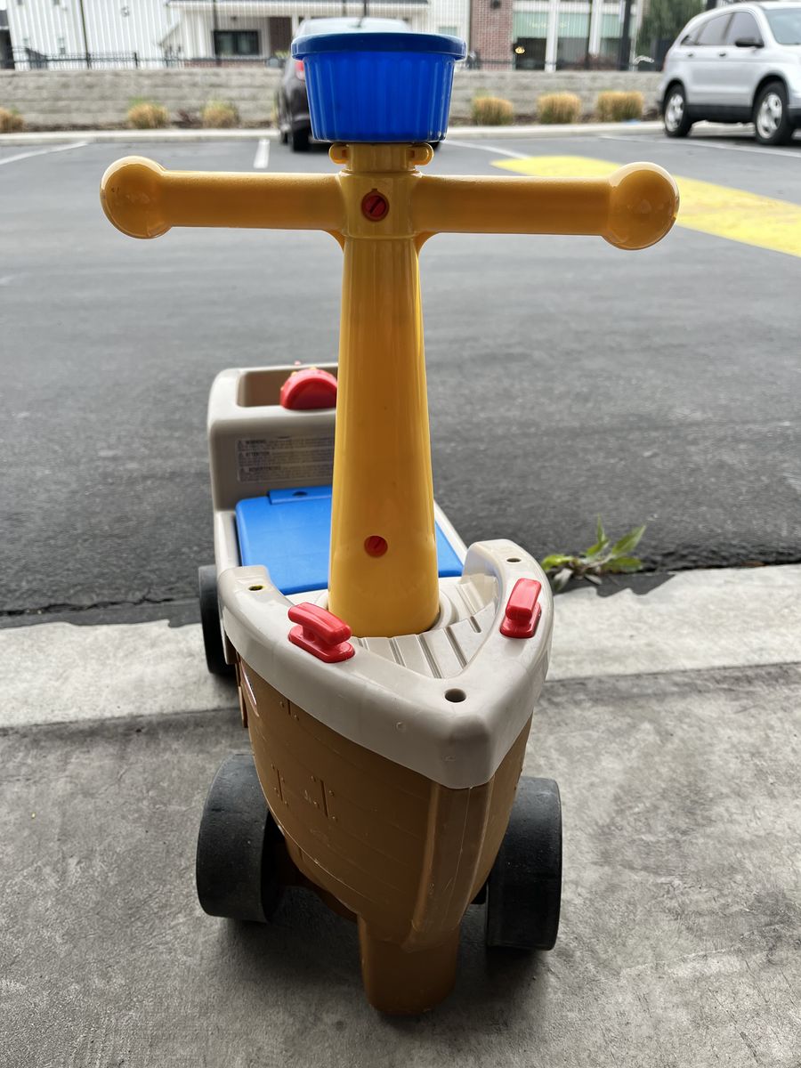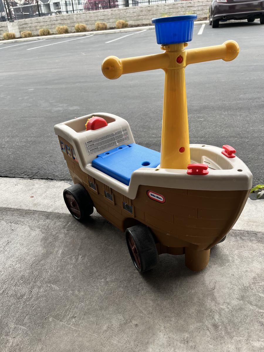 Little Tikes pirate ship ride‑on toy. Good condition and works great. Kids can sit and scoot, or push it around. Sturdy and easy to clean.