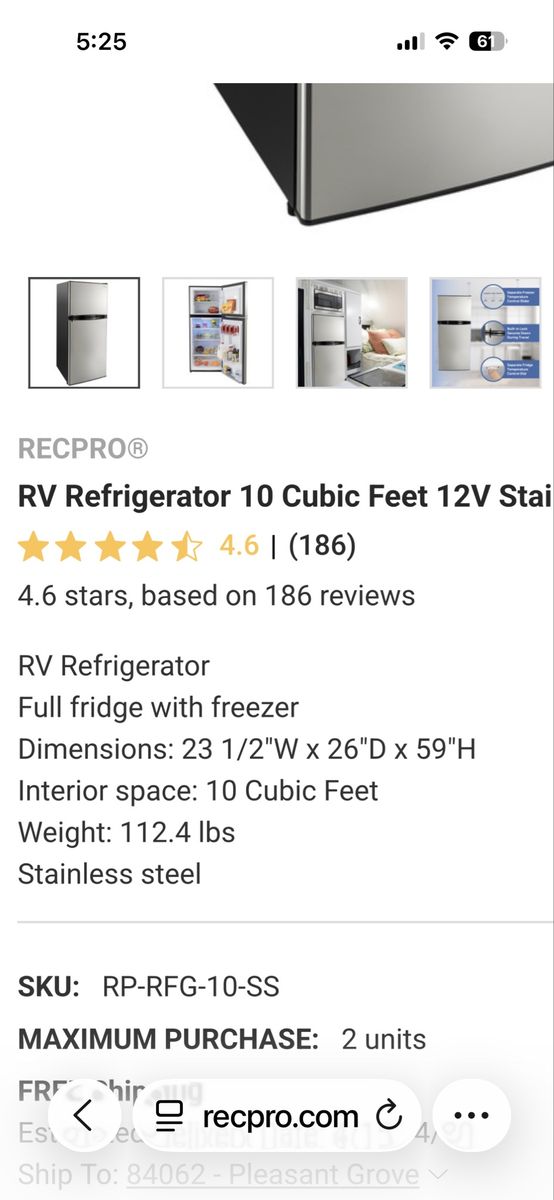 VenmoFor sale is a new, unused RecPro 12VAC fridge. Very low current draw, can be used with 12v battery and solar panel.