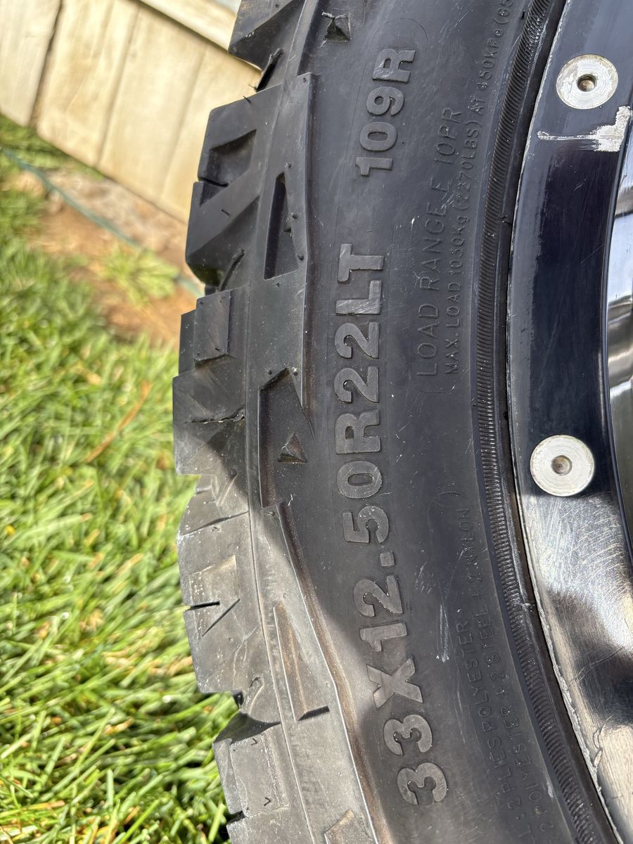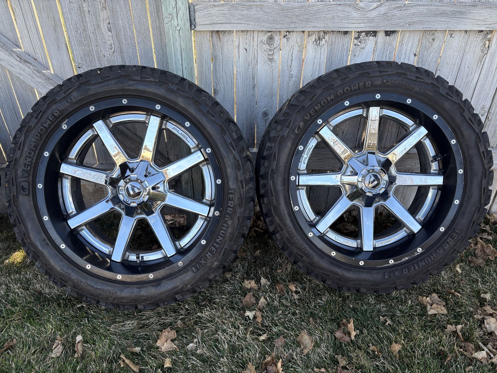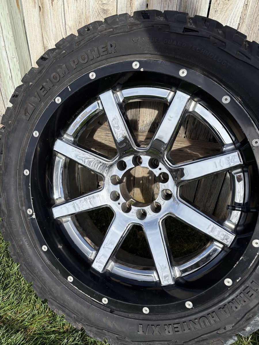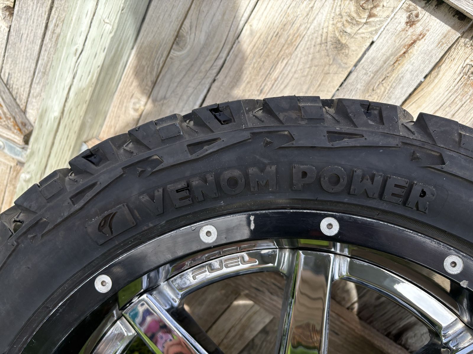 VenmoHave a set of 4 Fuel 22 inch rims with Venom Power Terra Hunter X/T tires. Tires are 33x12.5 R22 and have decent tread left. They are ten lug and fit Toyota Tundras. They should also fit Dodge trucks. They have a few scratches but are in over all good shape.