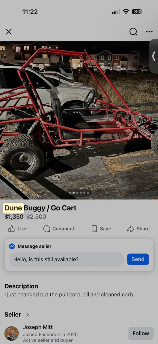 VenmoHas a Honda motor in it been siting for a while not sure if it works I was going to get a 212 or 400+ cc motor from harbor freight and slap it on. It’s pretty big you’ll need a trailer to take it.