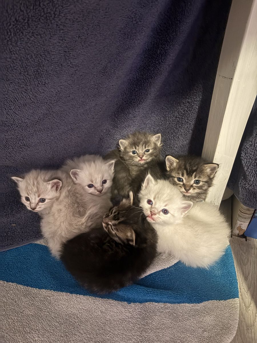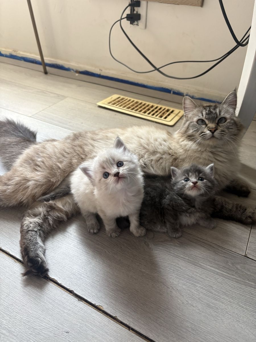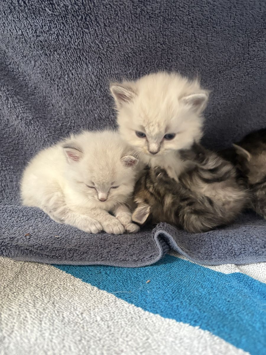 VenmoAdorable ragdoll kittens!!! They are 4 weeks old. They were born on March 10.. they will be ready to go around 7 weeks. They will all be litter trained and eating solid food when they are ready for pick up as well. I am asking for a 100$ refundable deposit since I have had many buyers in the past not show up. I am asking 200$ for each kitten . I have 4 white ones, 3 tiger stripped and 1 grey. I am asking low due to not having papers . Mother is very loving. Her past kittens have all turned out to be a sweet as her from what I’m told from previous buyers. ️