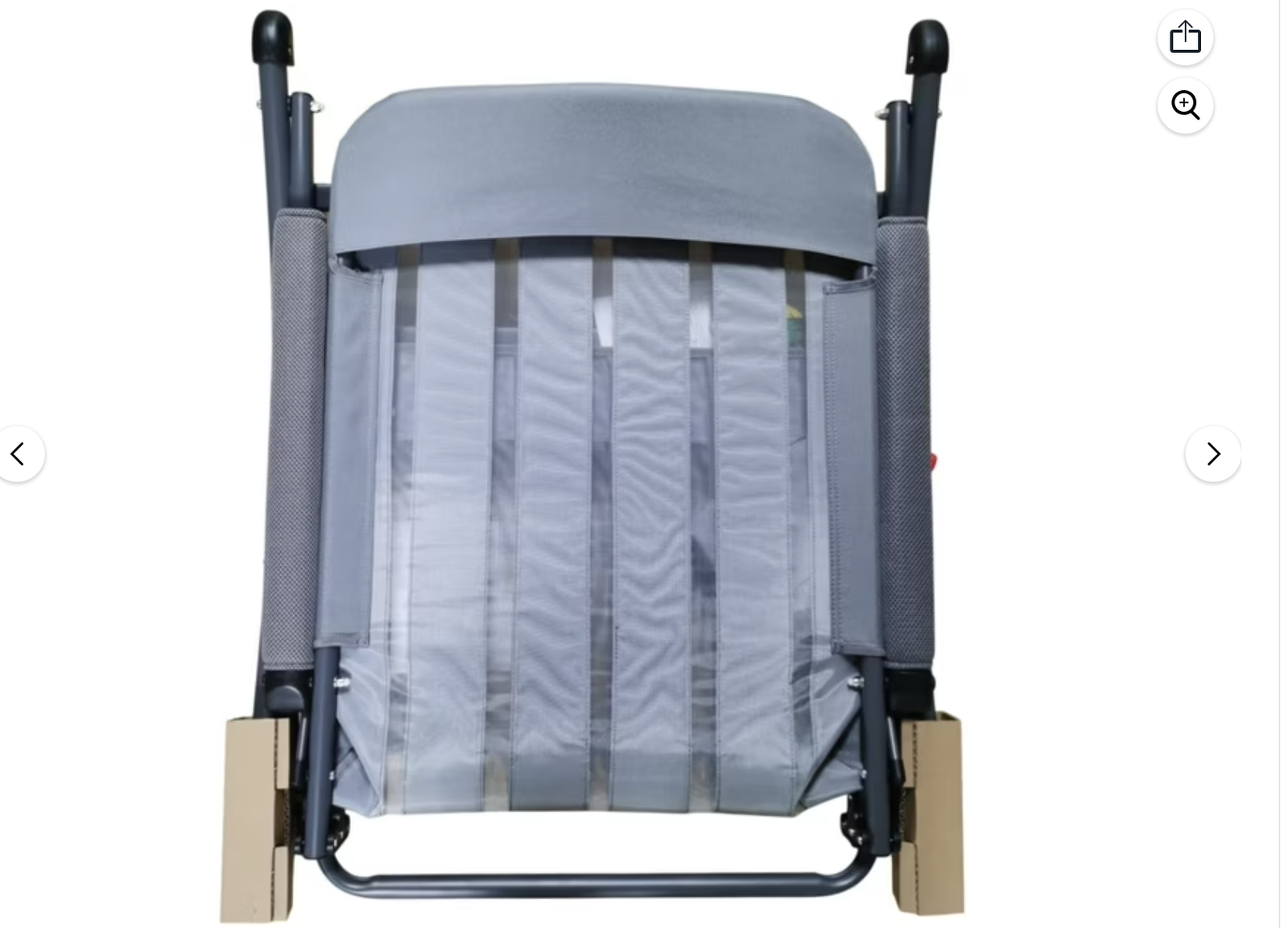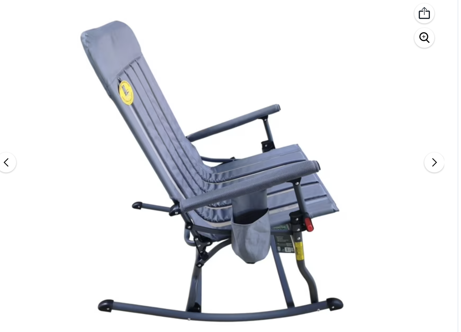 Seat width is 21.65", seat depth is 16.73", backrest width is 21.65", backrest height is 29.13" Rocking chair weighs 15.62 lbs. Folded dimension: 27.95" W x 5.31" D x 38.19" H Seat is 18.7" high from the ground when unfolded Padded for extra comfort Folds compactly for easy mobility Rugged steel frame with locking latch