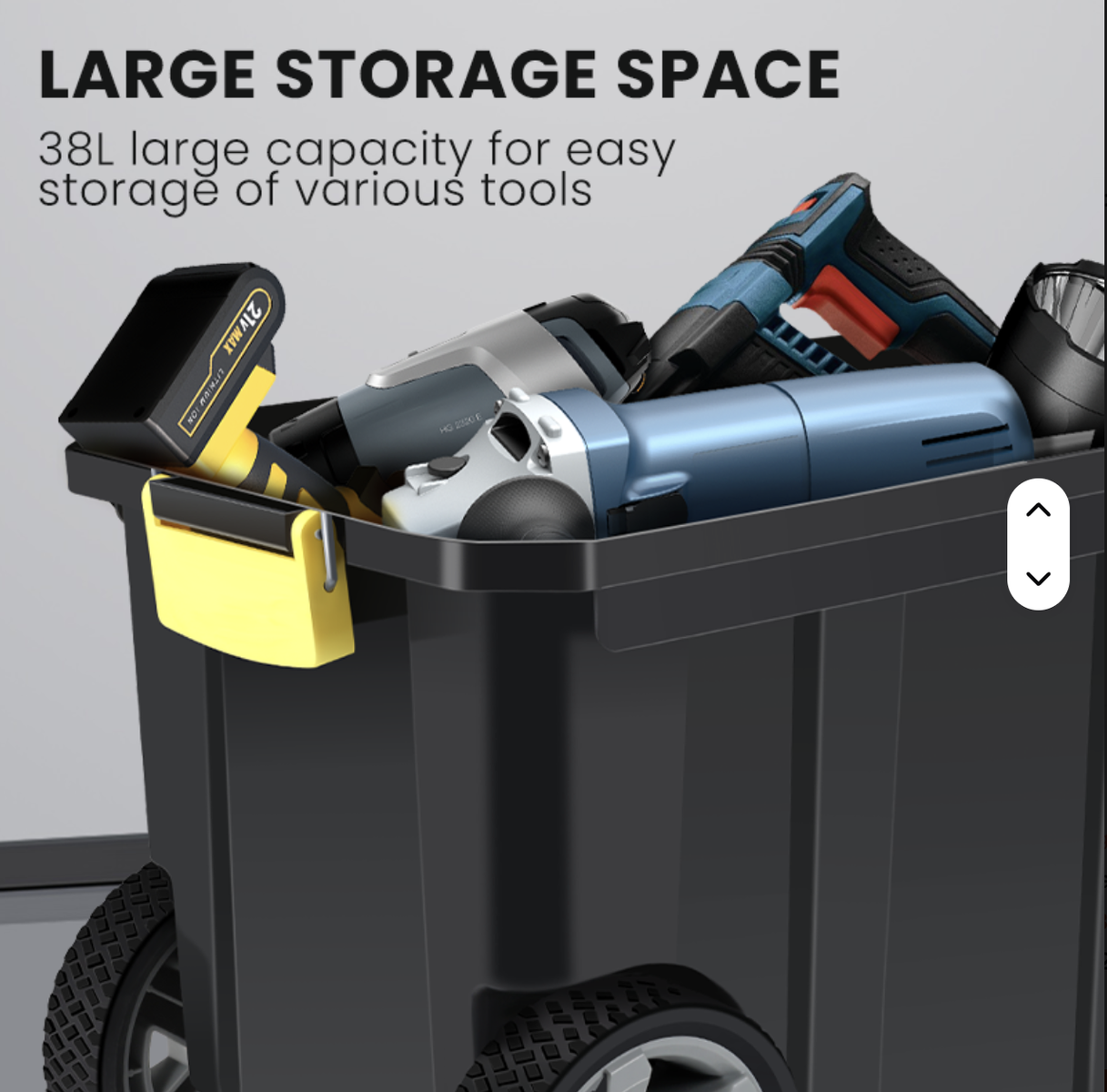 Brand new in box, Rolling Tool Box Mobile Tool Chest Storage Organizer Portable Black features an interior organizer tray for easy compartmentalization, while the bottom tray accommodates larger tools. Equipped with 6" oversized wheels and a telescoping handle, the tool box set is easy to roll over any surface and compact to store. Secure Design: Heavy-duty steel latches and a retaining buckle ensure the security and stability of your tools during travel. Stylish and Practical: The black case is dirt-resistant, and the diamond shape design adds a unique and fashionable touch. Specifications: Overall dimensions are 23''x11.5''x27.5'' with a weight capacity of 110 lbs 23" tool chest, providing ample storage for power tools and accessories. Durable Construction: Made from polypropylene resin, the tool box set is resistant to chemical spills, bases, and acids, ensuring long-term use.