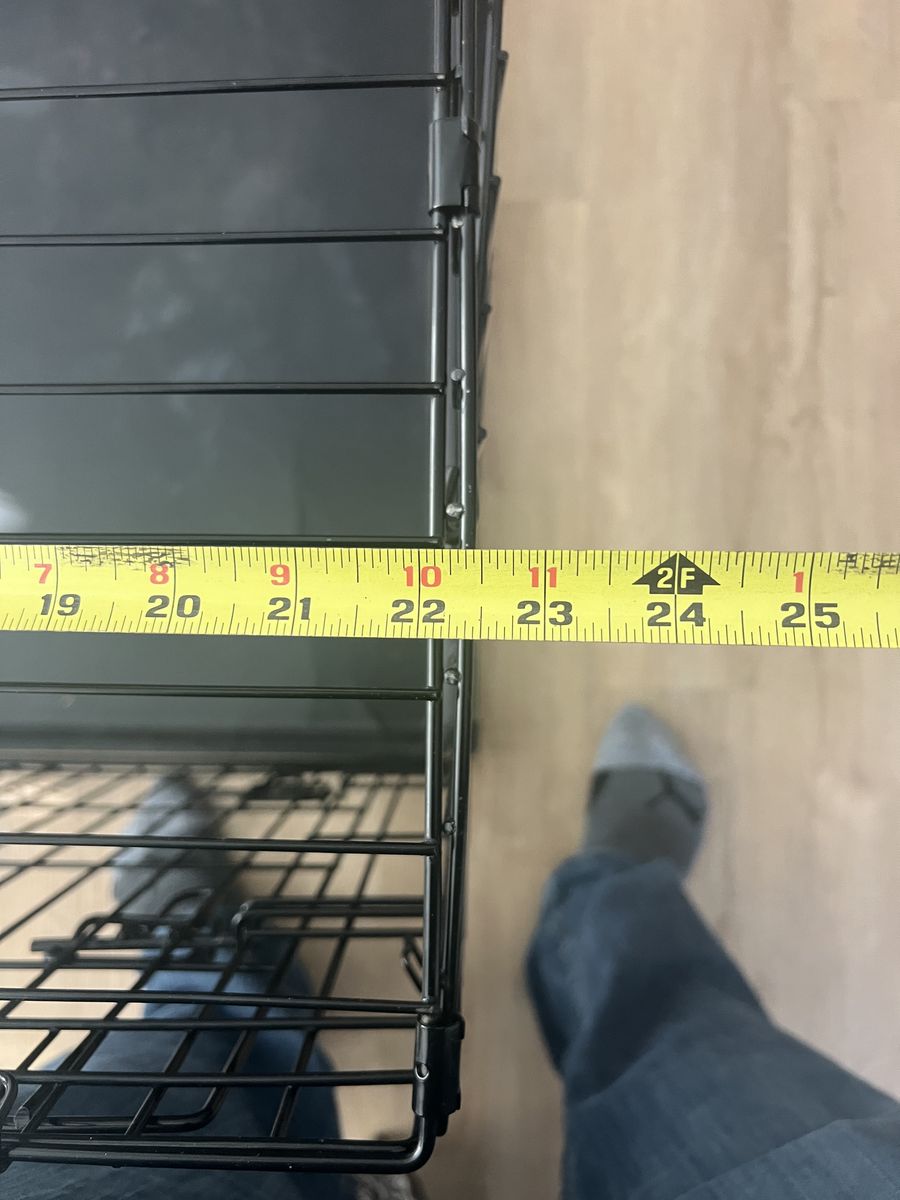 VenmoWe have a nice medium sized wire dog kennel. The measurements are 36”L x 22.5” W x 24” T.