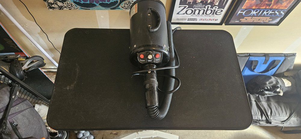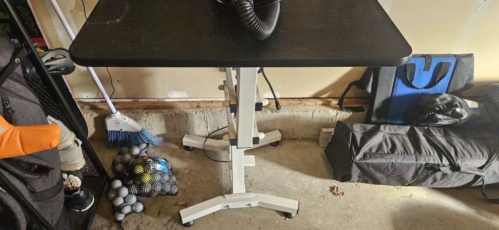 Zellesmaller dog grooming table, for 30lbs and under, works well for in home grooming. I dont have a grooming arm for it, but I have a spare dryer that is also working and is great for in home grooming. text if interested