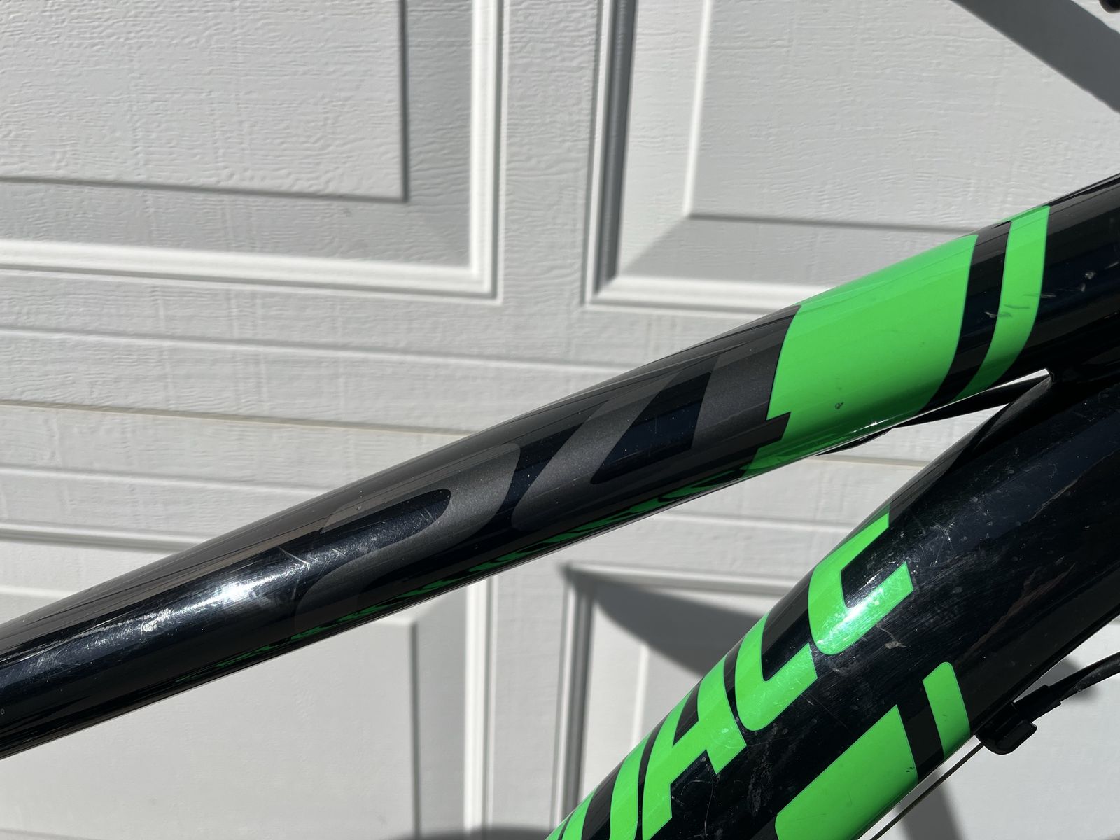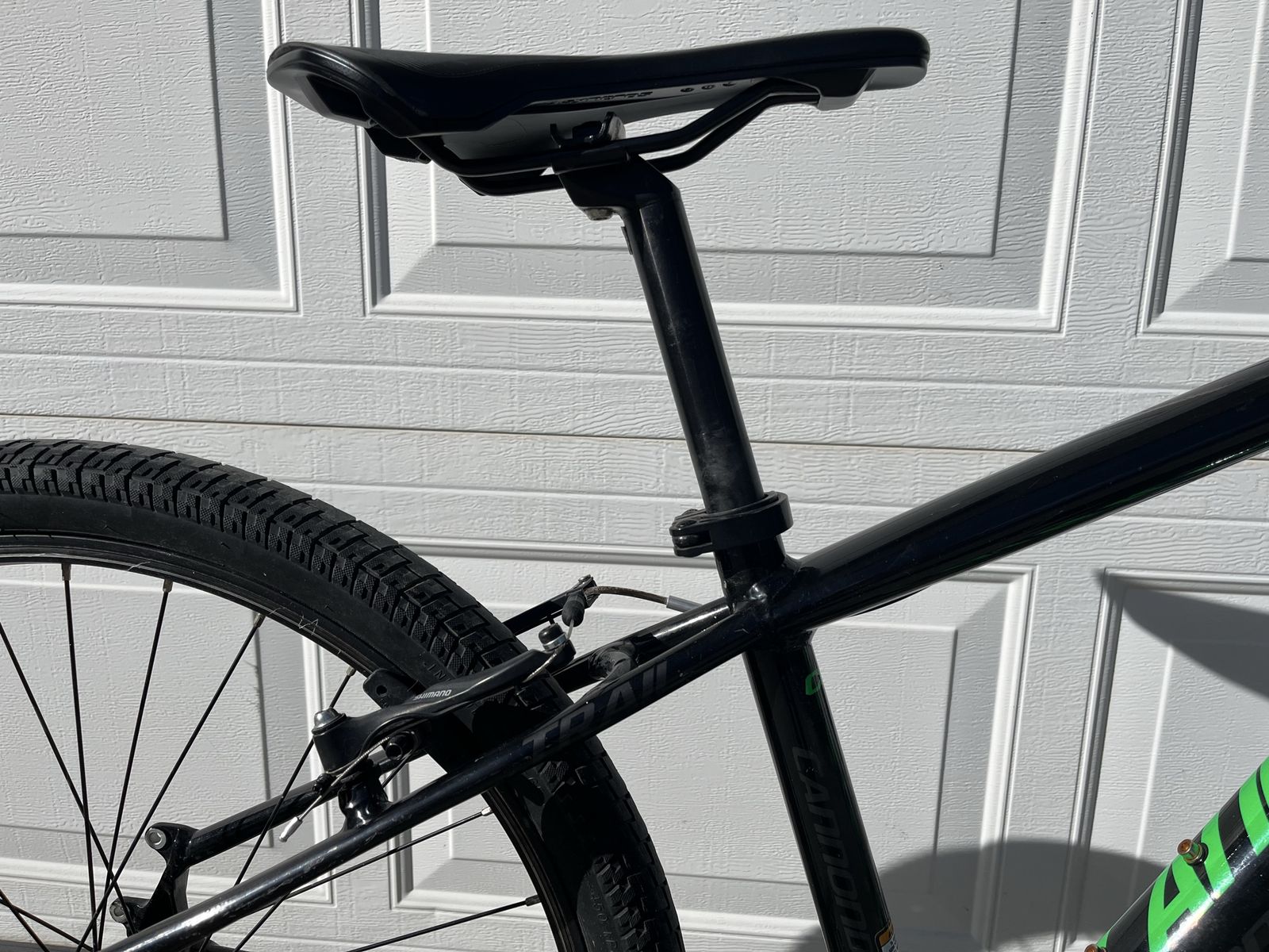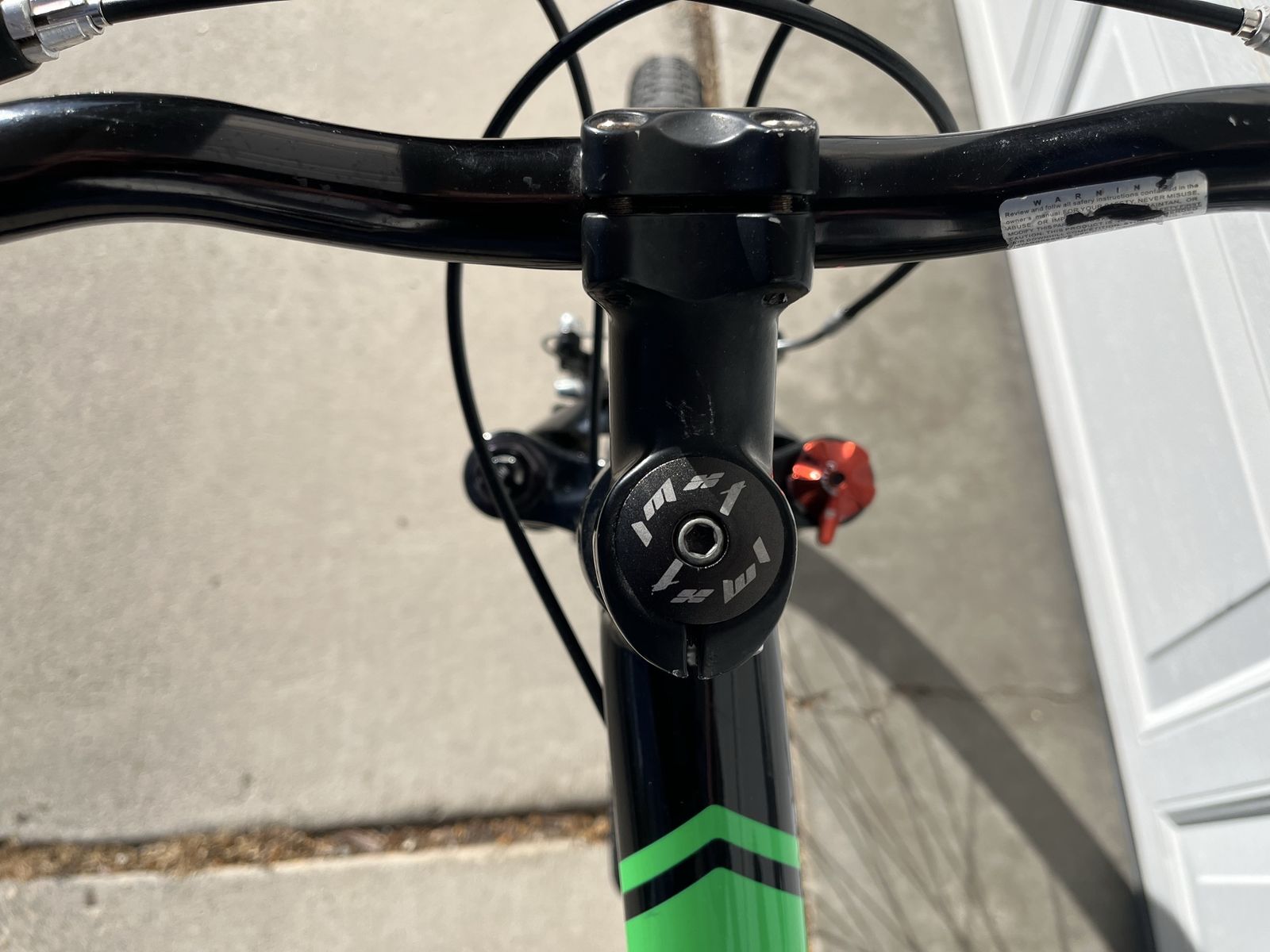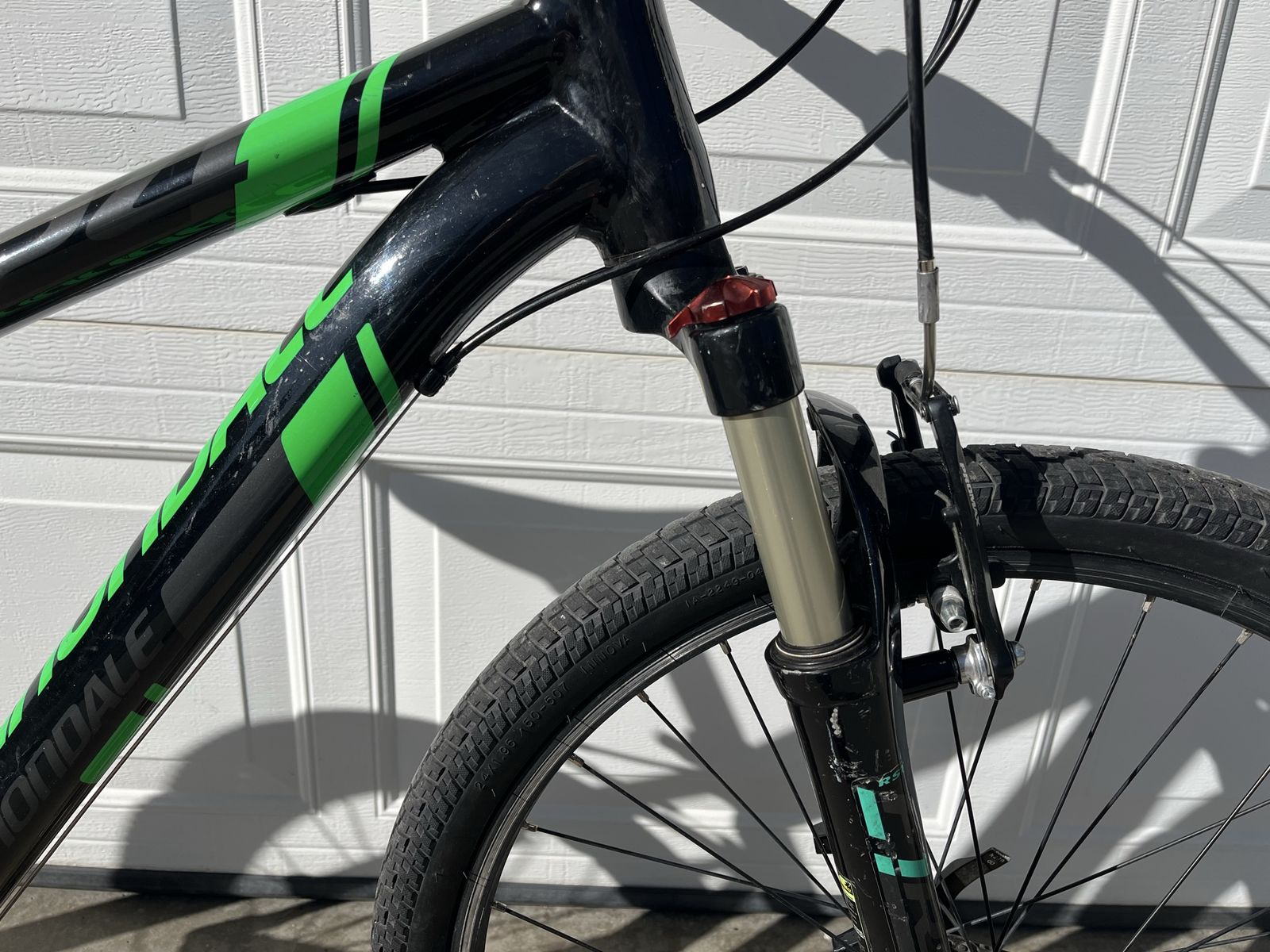 This has 21 speeds (3x7), 24 inch wheels, RST 60mm adjustable air fork with lockout, quick release skewers front and rear, and Shimano components. Except for a few minor scratches it's in very good condition. The air fork is what sets this apart from other bikes by allowing the front suspension to be adjusted by weight and riding style. Standover is around 23 inches.