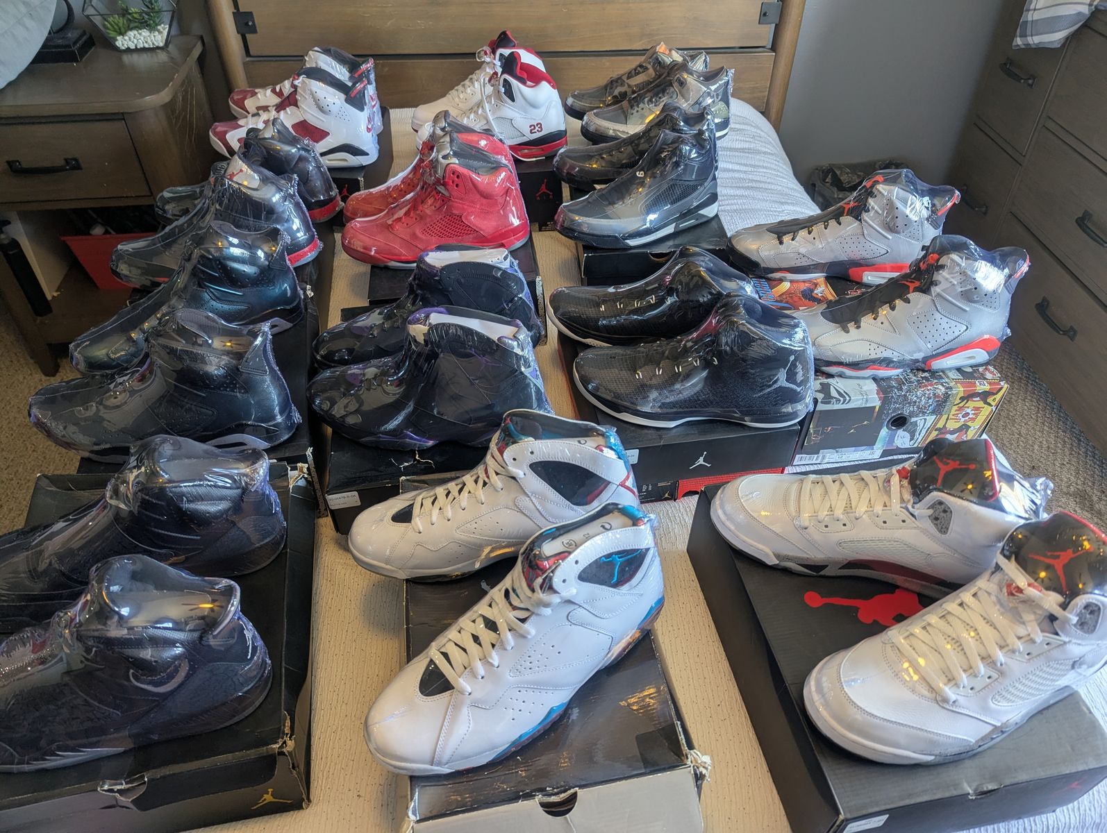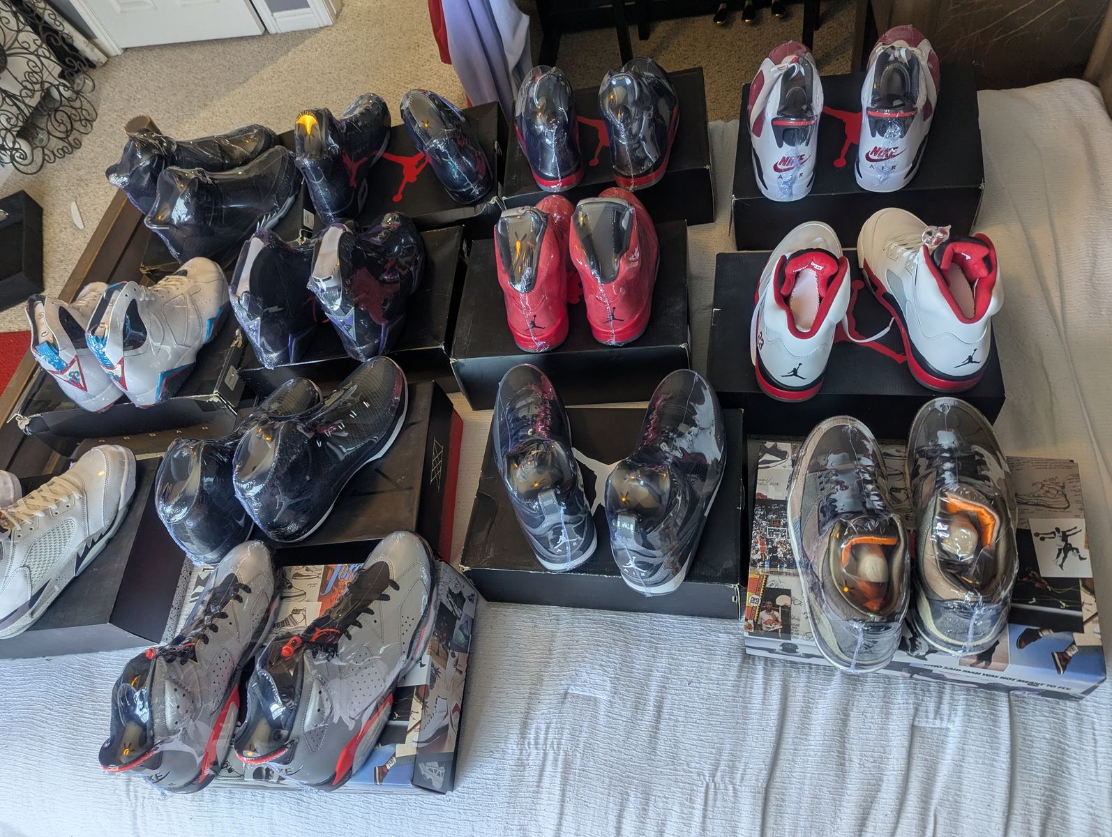 Selling part of my collection Jordans many types mostly size 12 look at the pics tell me what you want prices start at 200 and up, Contact Jose @80165422O6 if you don't see what you want let me know I might have them in stock and thanks for looking at the ad.