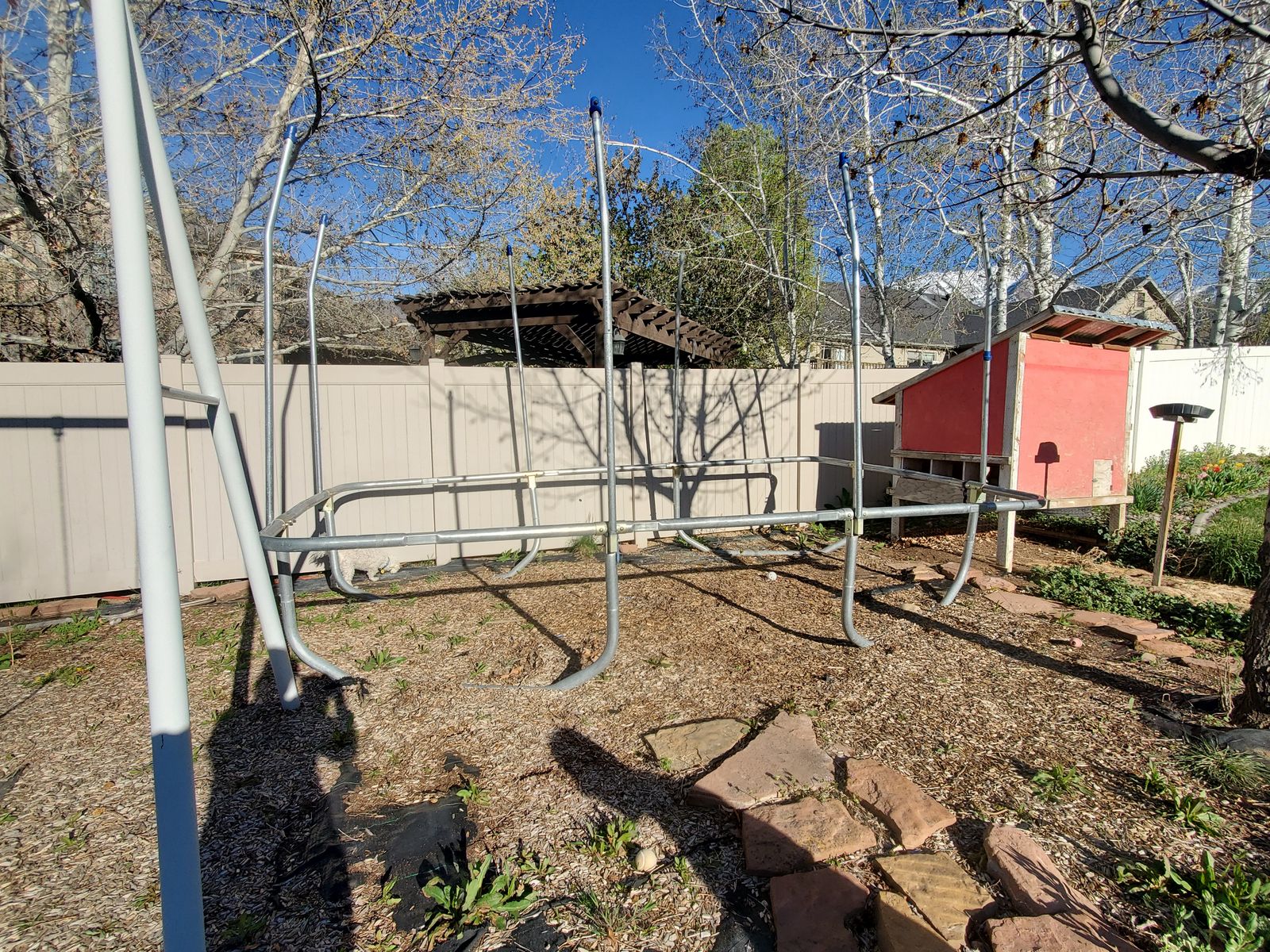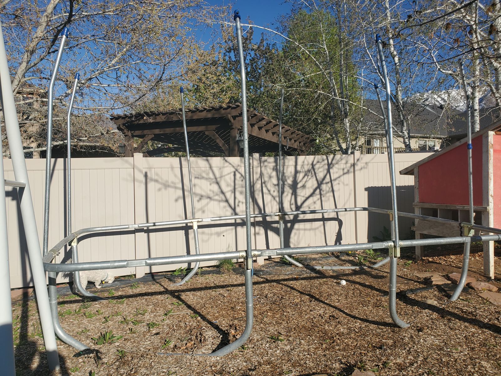 VenmoI believe that this is a Skywalker trampoline, we only have the frame since the mat was worn out. I think you can get the mat for about $100. We have the springs but new springs are recommended. The frame is about 15x9 feet. This item is free but you must take it apart yourself.