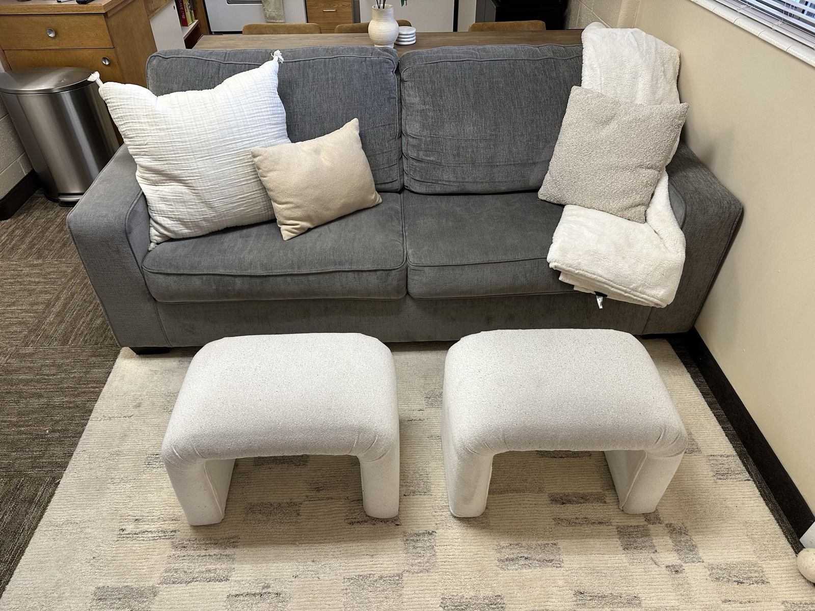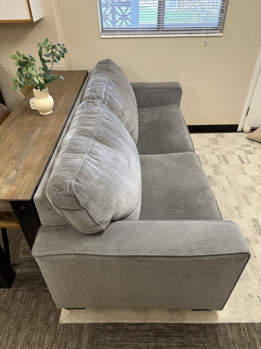 Gray sofa, TV consoles, cabinets/storage, TV. Message me for prices or offers. 385-352-3277