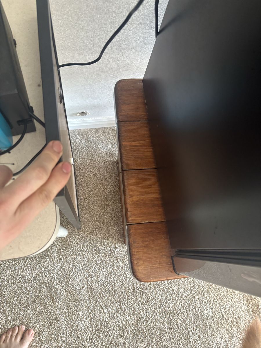 As you can see I currently use this table to hold my mini fridge. Solid wood and has worked great for years. Come take it.