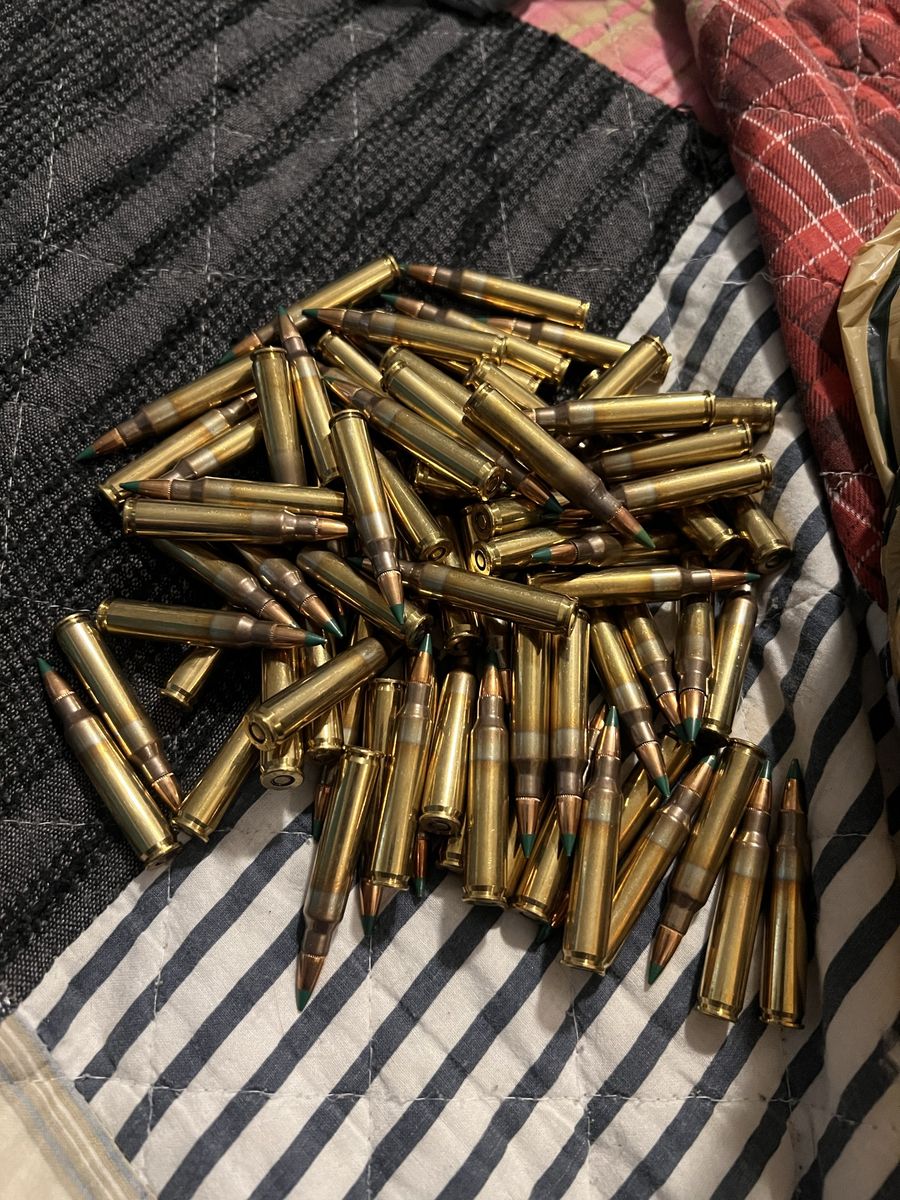 I have 335 rounds of 55 grain fmj and 78 rounds of 62 grain green tips ammo (413 rounds total) I’m looking to trade for some brass cased plinking 308 ammo. Please message with offers.