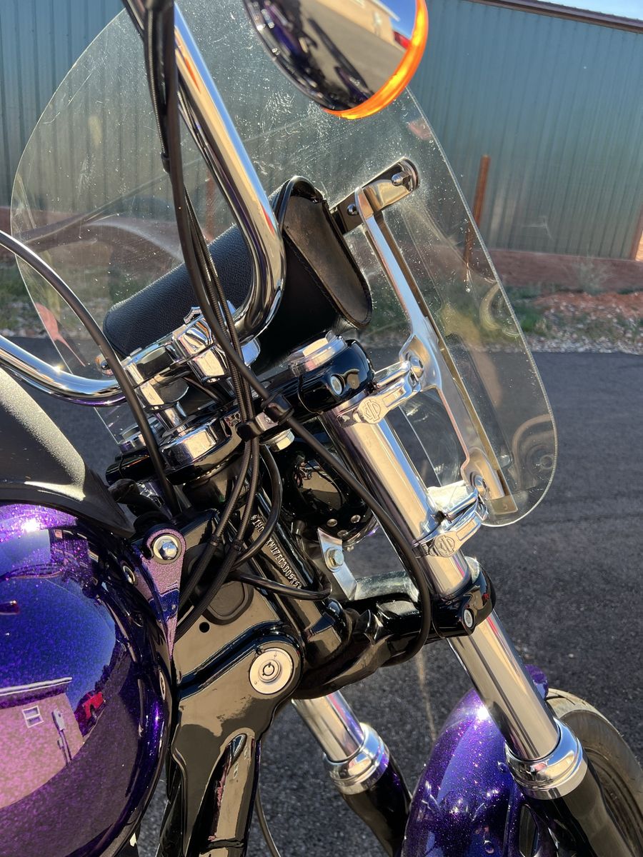Venmo2014 Dyna Street Bob in limited edition (1 year only) Voodoo Purple Metallic Flake. Includes quick release windshield, windshield bag, teardrop rear mirrors, footboards, and locking hardshell leather saddlebags. Only 3534 original miles. And yes, it runs!