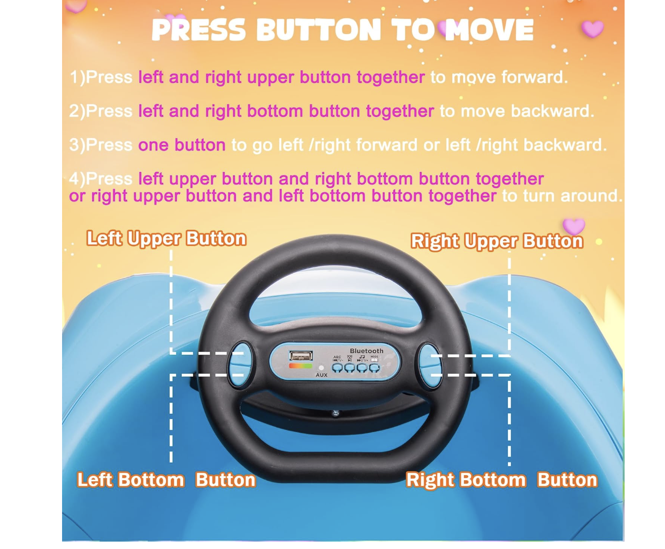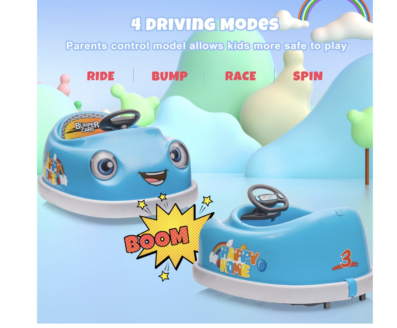 Brand new in box, unassembled, 12V Dual Battery Electric Ride on Kids Bumper Car w/Remote Control,360 Degree Spin,Push Rod Rocker Horse Function,3-Speeds Babies & Toddlers Bumping Car Ride on Toy Gift for 1-4 Years Children (Blue) Premium performance and long-lasting battery: With two 12V rechargeable batteries, this kids bumper car provides 3 hours of non-stop riding fun. Its speedy charging time of 8-12 hours. 60-degree spin & Rocking horse mode: This toddler bumper car offers a funny riding experience with its impressive 360-degree spinning feature. Our bumper car with rocking horse mode, horn, USB and Bluetooth player perfect for kids aged 1-4, it guarantees endless smiles and laughter. Top safety features for worry-free play: Safety is our utmost priority. This bumper car is built with a sturdy plastic shell construction and equipped with anti-flat tires , ensuring a secure and protected ride for your little one. It also comes with a detachable tray for snacks and a push handle for parental control. Easy to use and hassle-free setup: No need for complicated assembly. Simply connect the battery wire. Our user guide makes it effortless for both parents and children to operate.Parents can also use the remote-only mode to control the direction and adjust the speed for younger children. The brisk walking speed- suitable for the safety of toddlers. Self-driving speed: 3 mph. Remote speed: 2mph, 2.5mph and 3 mph.