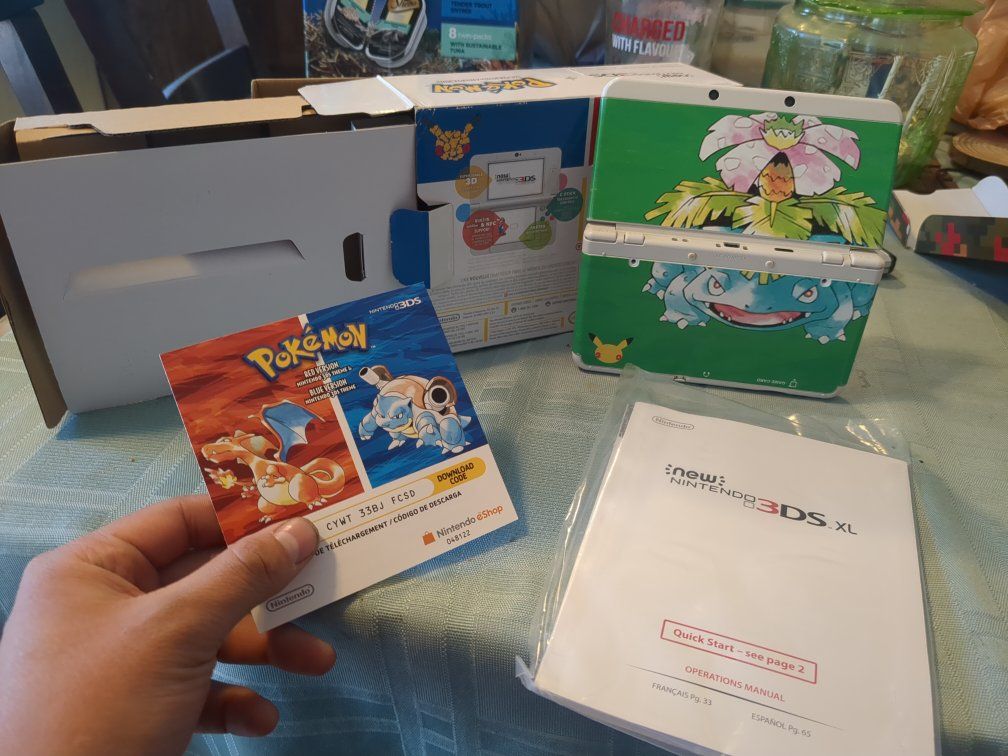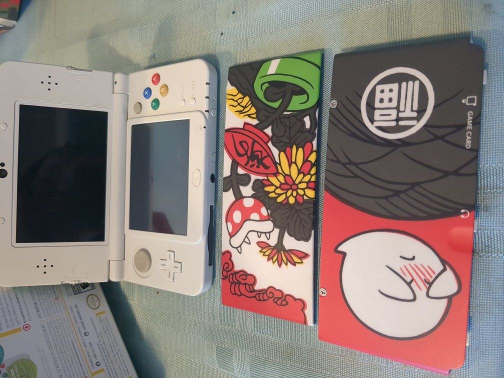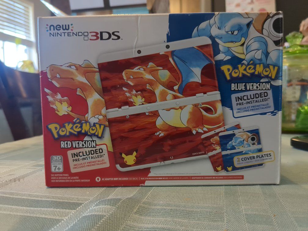 This my personal 3DS, the 20th anniversary CIB. The Charizard and Blastoise plates are in fantastic shape, as I am a Venusaur fan and never used them. 3DS itself is in fair shape, its been owned from new by me and has some light wear on the top and bottom screens, but that's not what you're here for. Includes 5 additional OEM, NOT REPRODUCTION cover plates visible in photos, including the mario hana fuda set, as well as one aftermarket set seen in photos with Venusaur decals applied. Console is softmodded, so it can be reversed, but I have not blanked my accounts or anything so you will get tons of games on the unit, both exclusive Pokemon Red and Blue themes and the games themselves that came as a download code with the console, a 32GB SD card, as well as an OEM charger and all manuals and inserts. Message me for any details, console charges and powers on just fine, make me an offer.