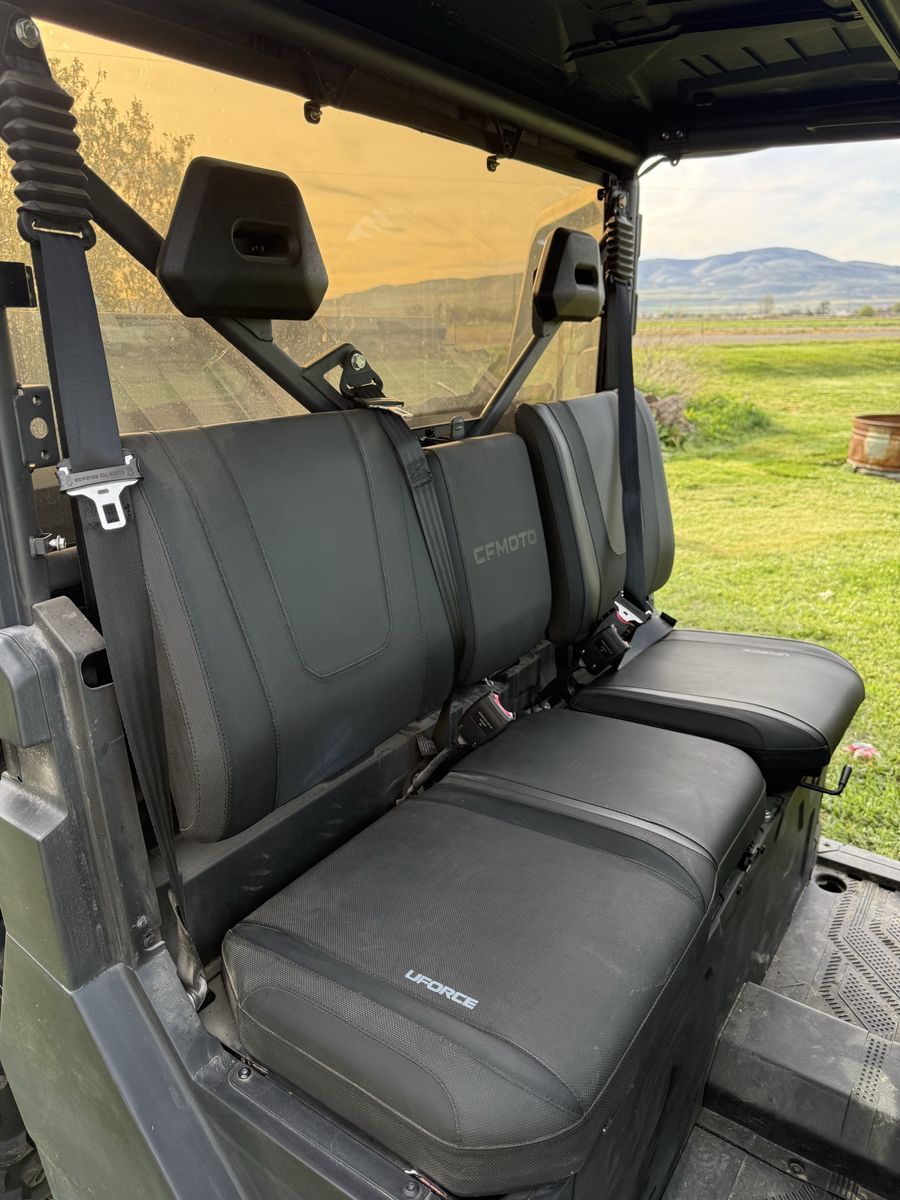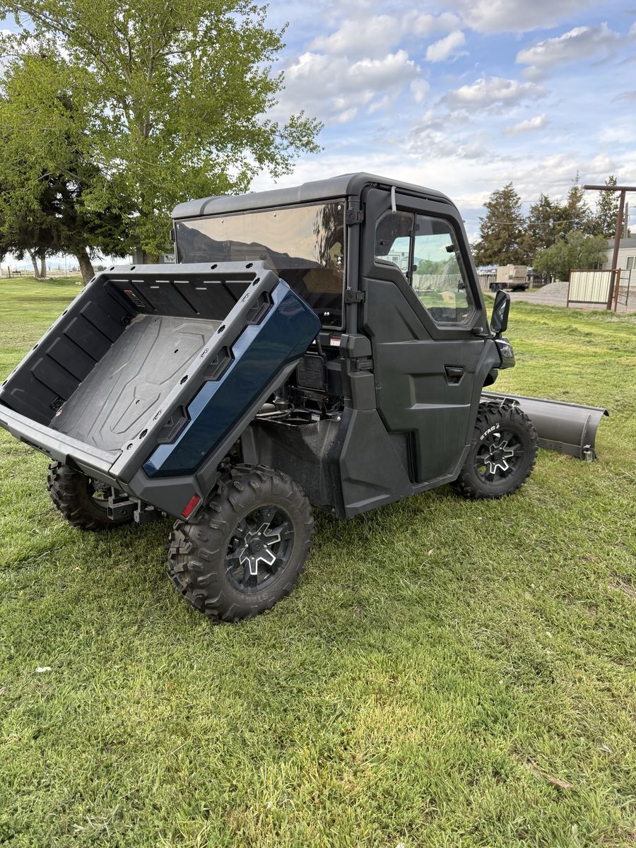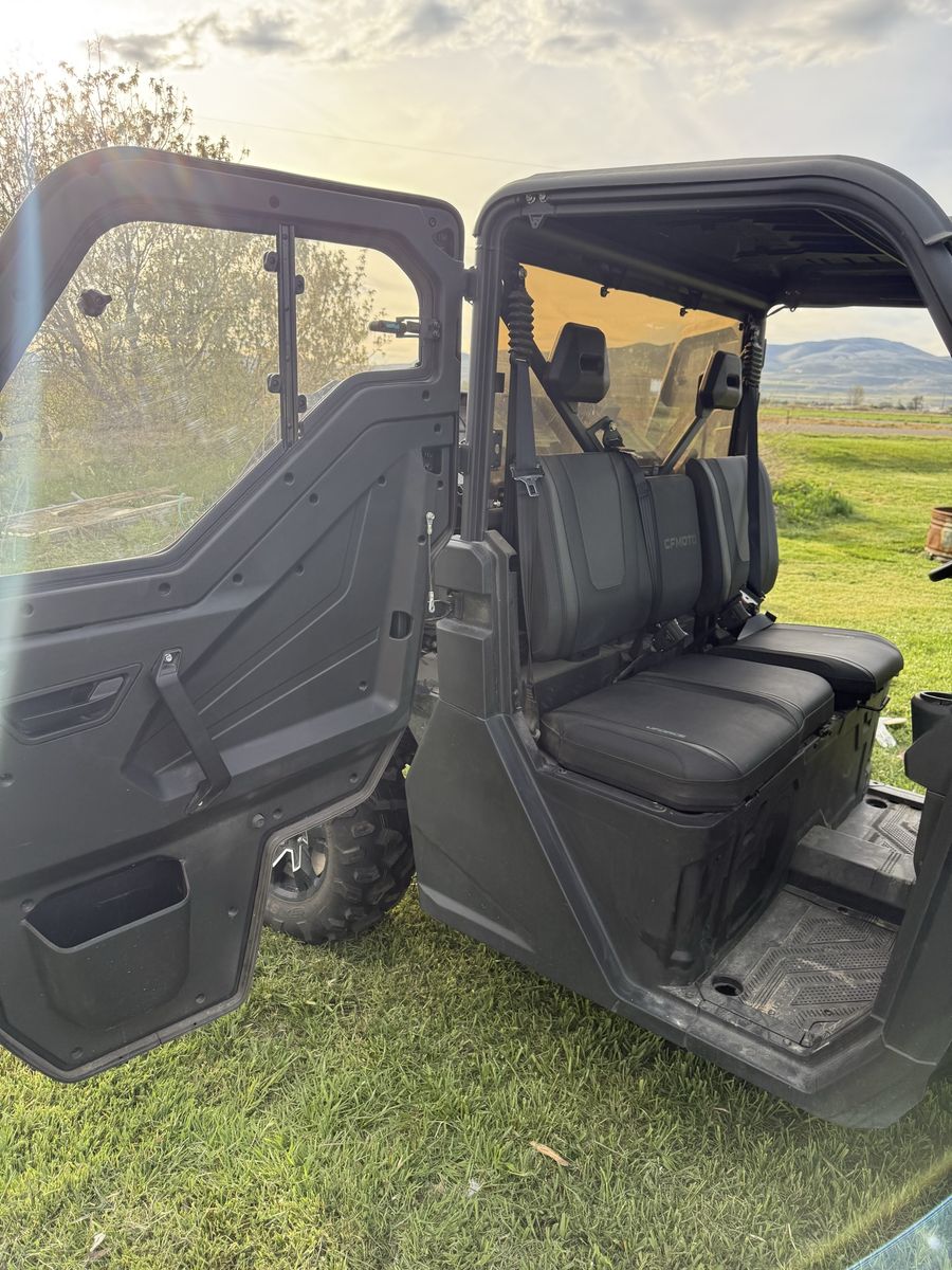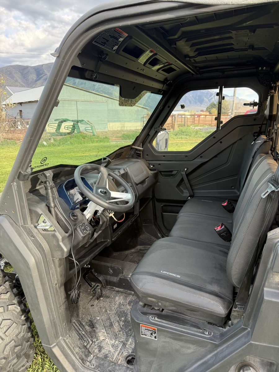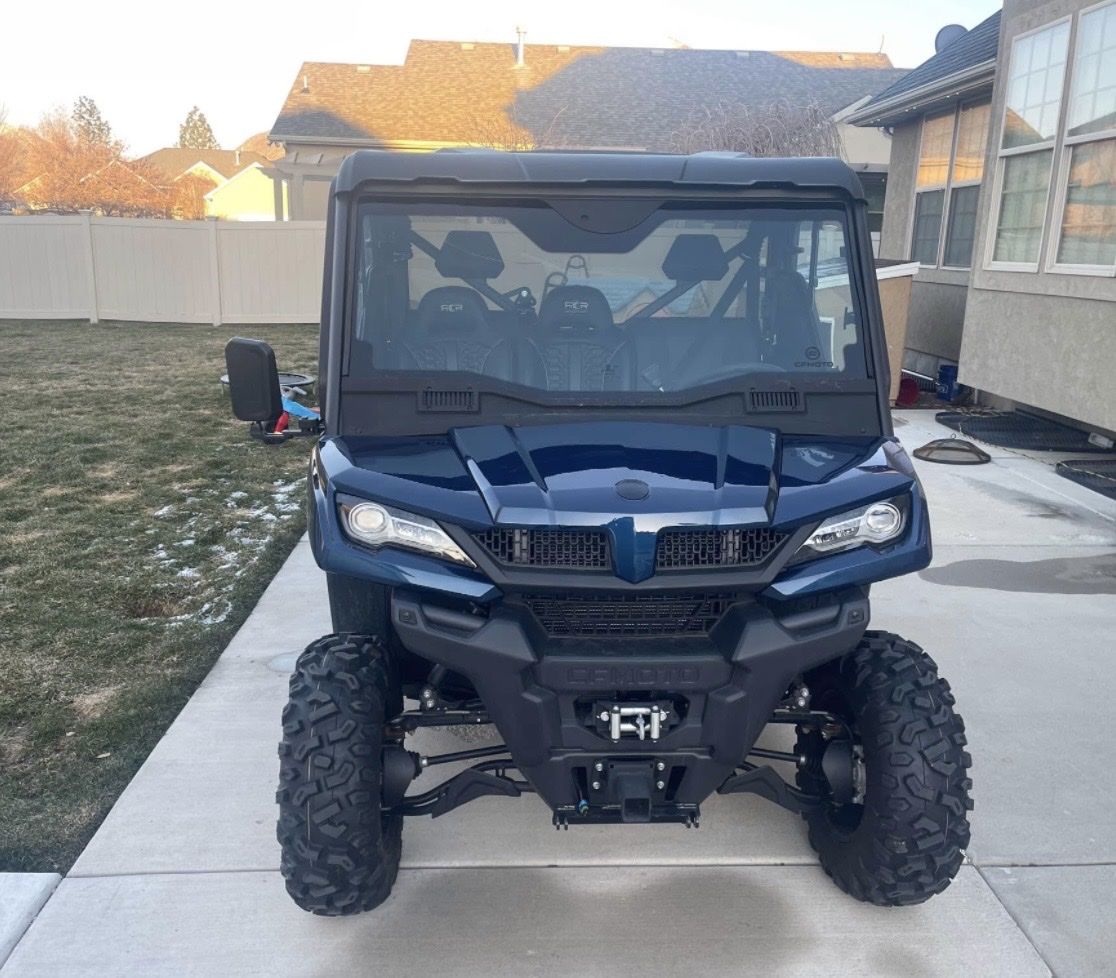 2023 CF Moto Uforce 1000 244 miles on it. When we bought it this is what was added to it: full sized doors, glass windshield, back window. A lift kit and wheel spacers were added on it for a better stance. It also has a 72 inch snowplow that is electric over hydraulic, so you can swing the blade from left or right inside the cab. A heater was installed inside as well. The tires are still in great condition! As you can tell from the miles, I have very rarely used this over the course of a year and that is why we are selling it. We would rather someone else enjoys it! The previous owner rarely used it as well because he moved into a more densely populated area and had no use for it. It's been stored inside. The windshield has a crack in it. And a small scratch on the passenger door other than that it's in new condition. The doors were $2000. The windshield was $900. The rear window was I believe $200. The heater was $400. The snowplow with the electric set up was over $1500 I believe. Firm on price, no trades.