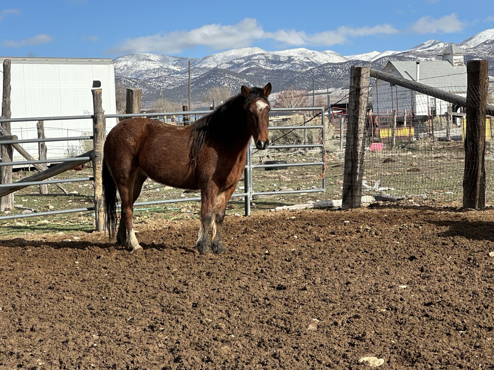 Bay mare is around the 7-9 She is untouched but mellow $500