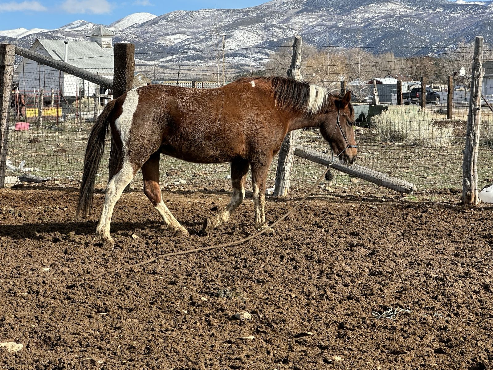 ZellePaint mare is said to be 5-7 She is halter broke, picks up all 4, hard to catch but is in your pocket soon as she is caught Should be easy to start under saddle $2000