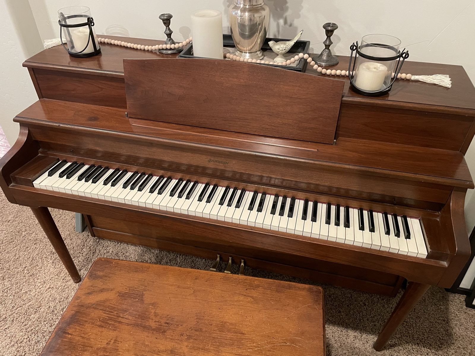 VenmoFree piano, sounds good. One key 4 from the right and one 2 from the left are sticky. Comes with bench.