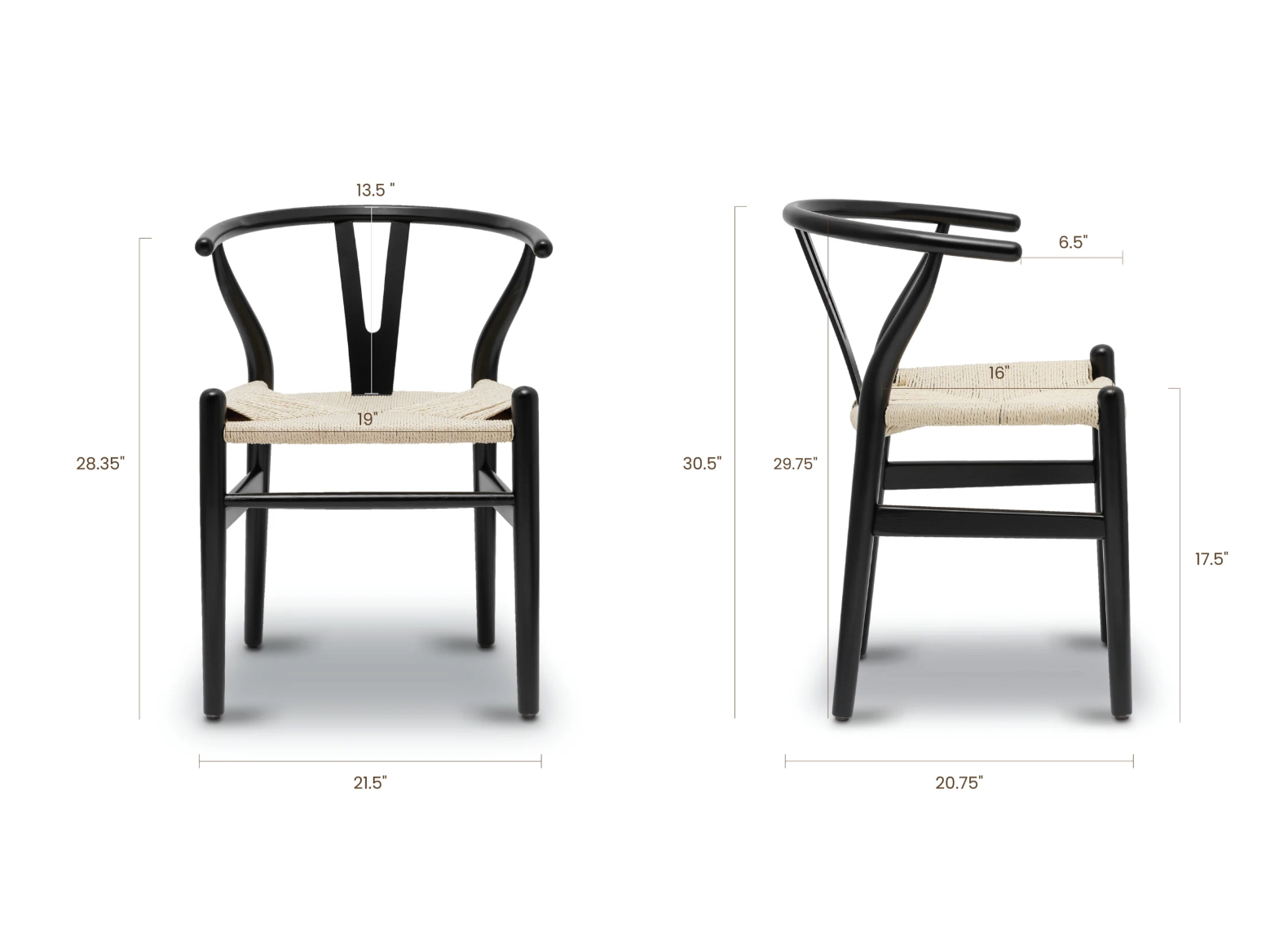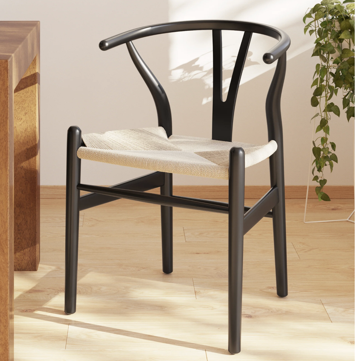 Brand new in box, assembled. Wish Chair, Black with Natural Seat, hand woven seat, solid wood frame, one available