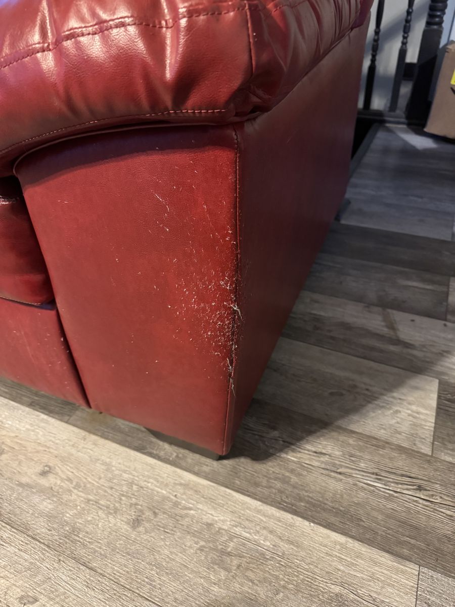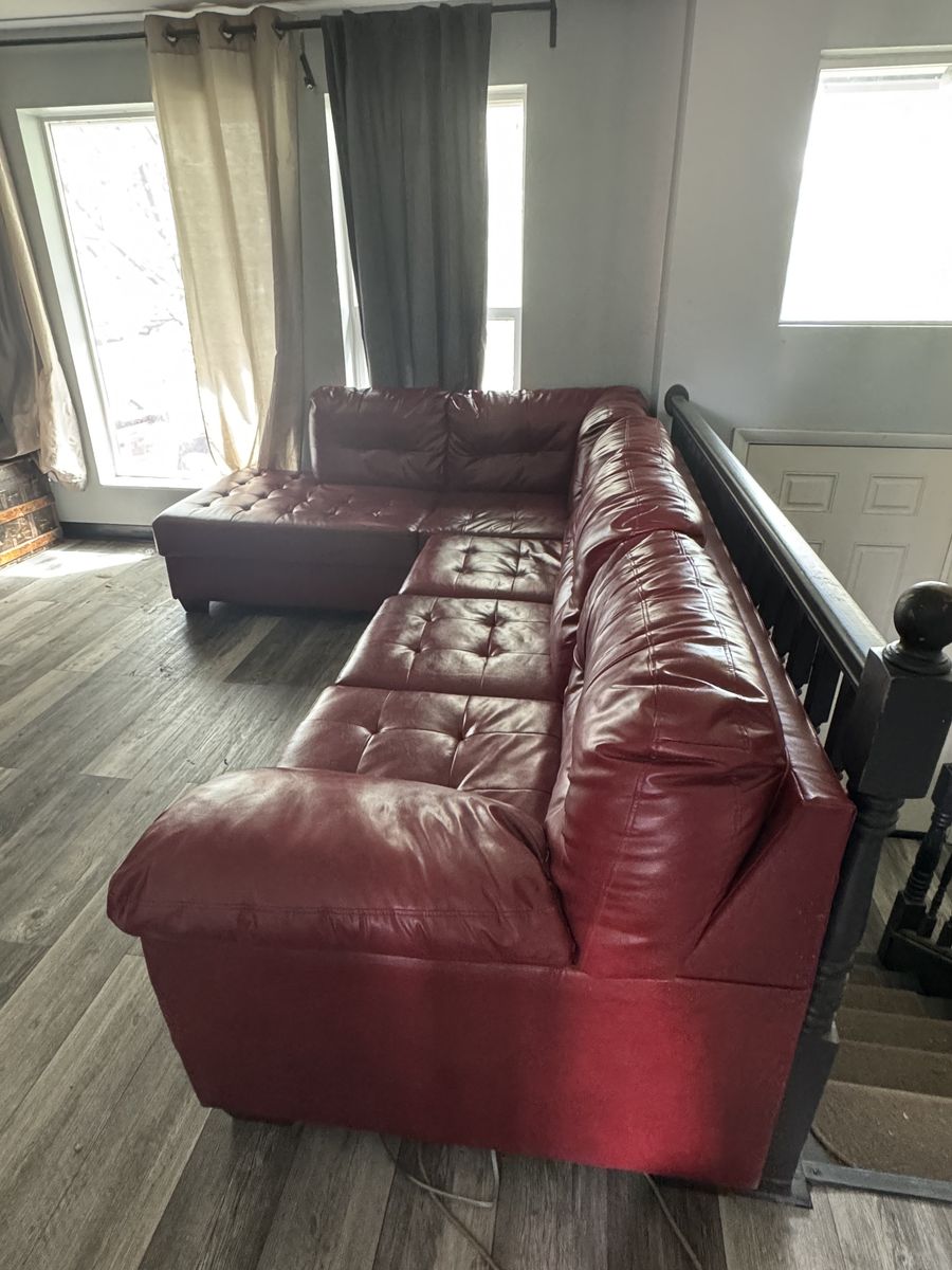 Leather sectional for sale. Has one small area of scratches other than that it's a great sofa and very comfortable. It has 2 pieces