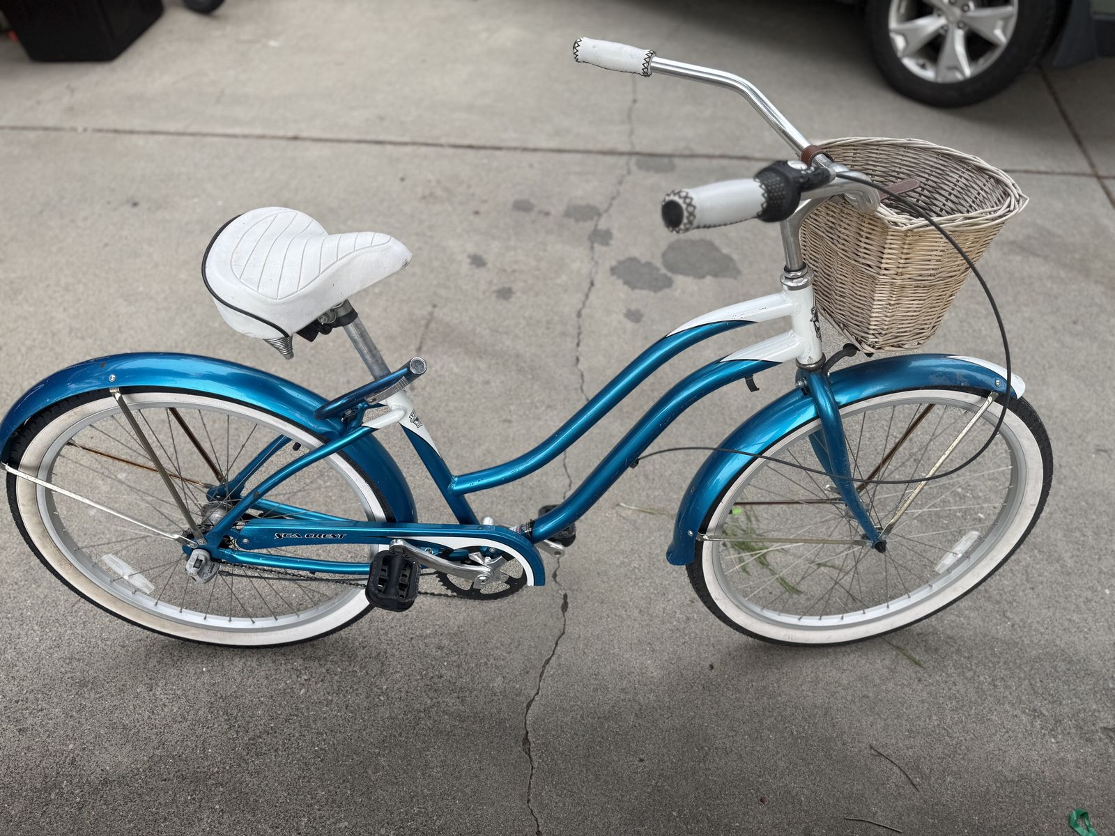 VenmoClassic Schwinn Seacrest womens cruiser. 3 speed internal hub gear. In great shape with original metallic blue and white paint job. Whitewall tires and basket.