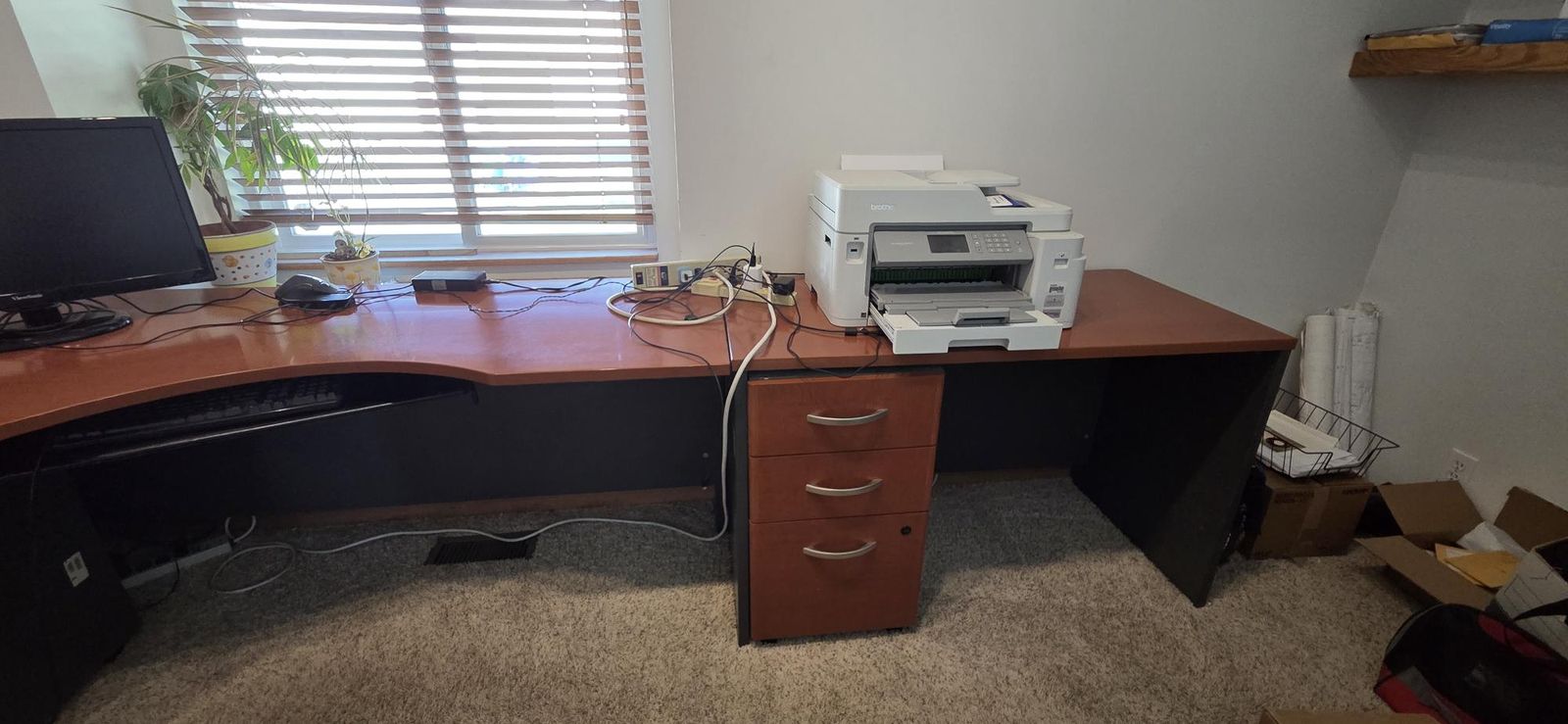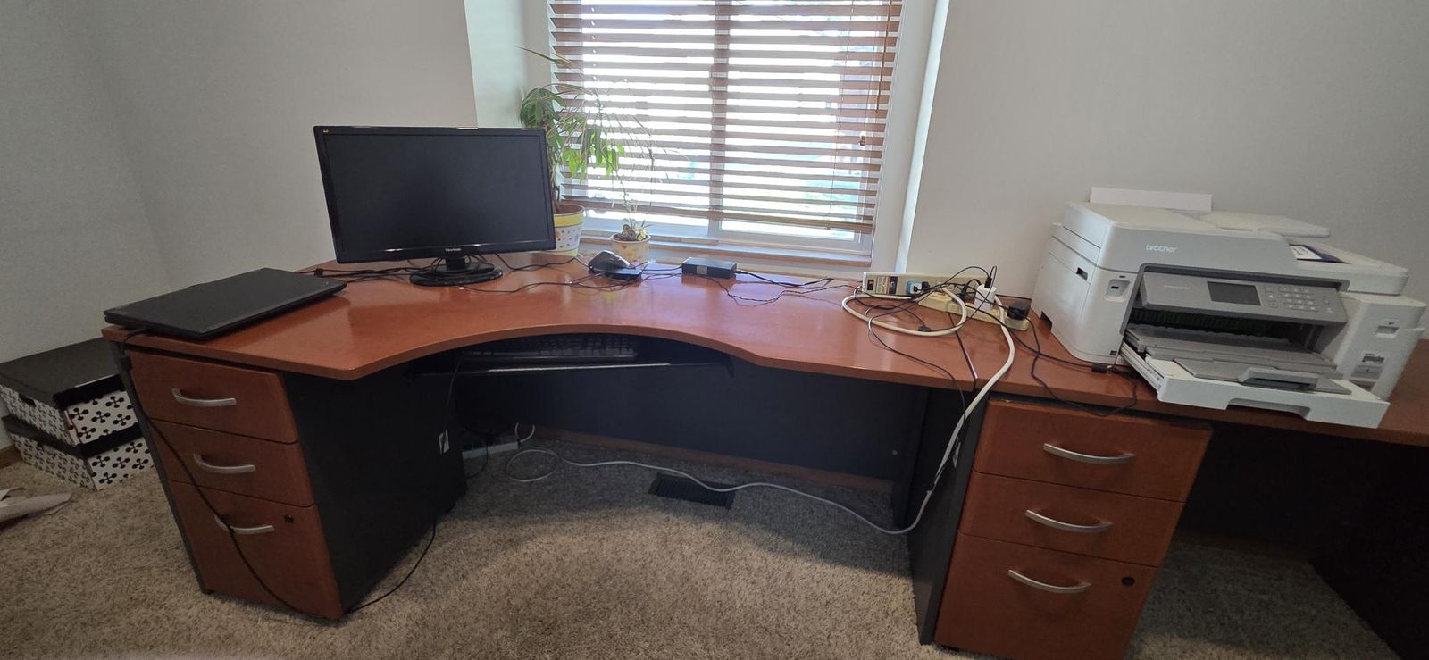 VenmoComputer desk, study, craft desk, room for printer includes two file cabinets. Pull out for key board. Can be 2 separate pieces, does not have to go together. Good condition. Sturdy. Great for home office. Brand Bush Business.