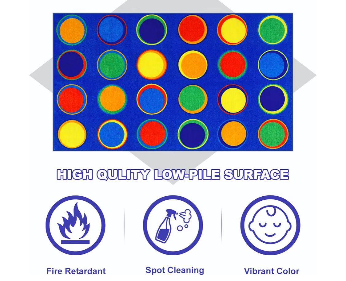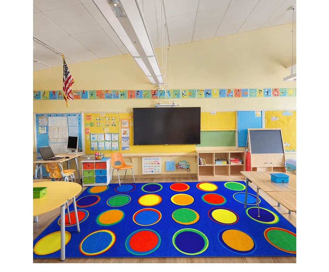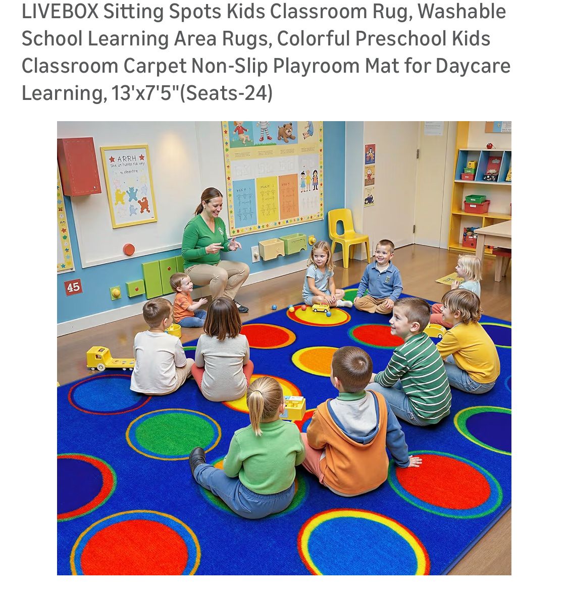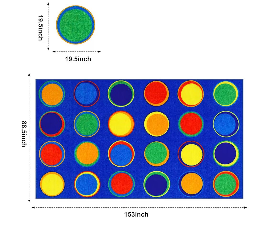LIVEBOX Sitting Spots Kids Classroom Rug, Washable School Learning Area Rugs, Colorful Preschool Kids Classroom Carpet Non-Slip Playroom Mat for Daycare Learning, 13'x7'5"(Seats-24)