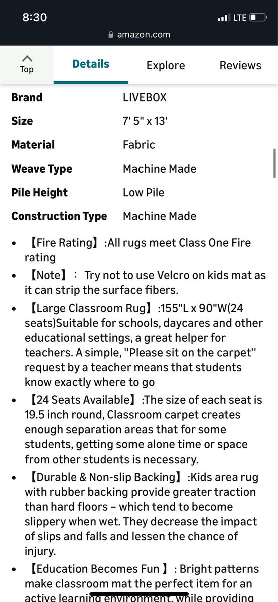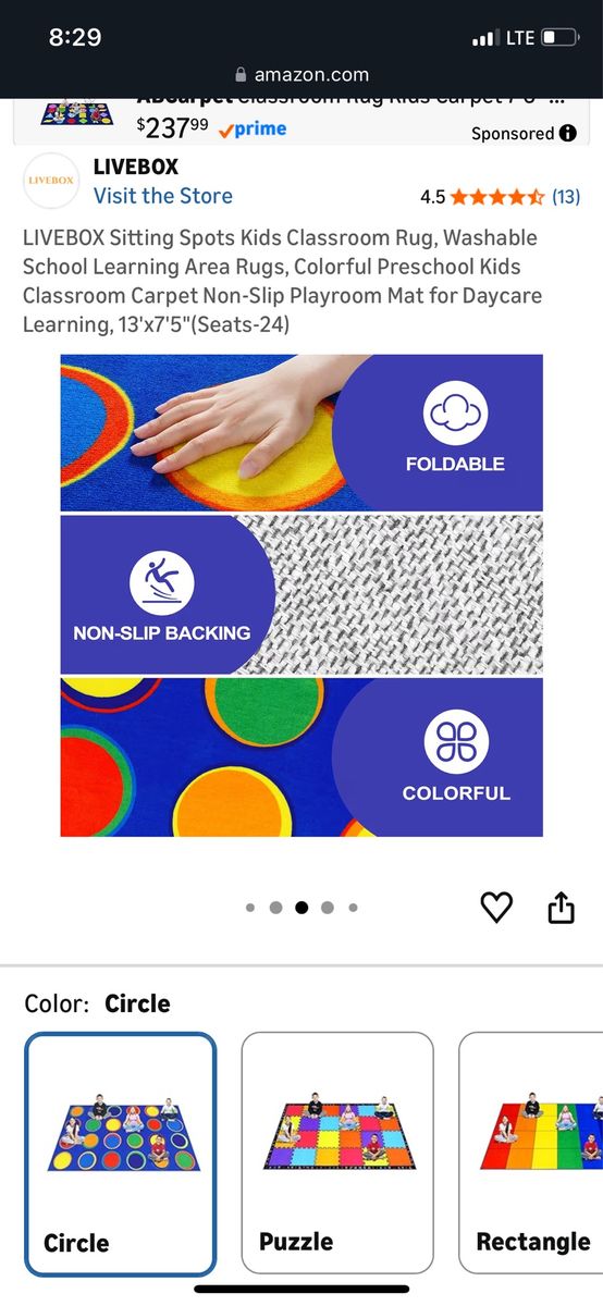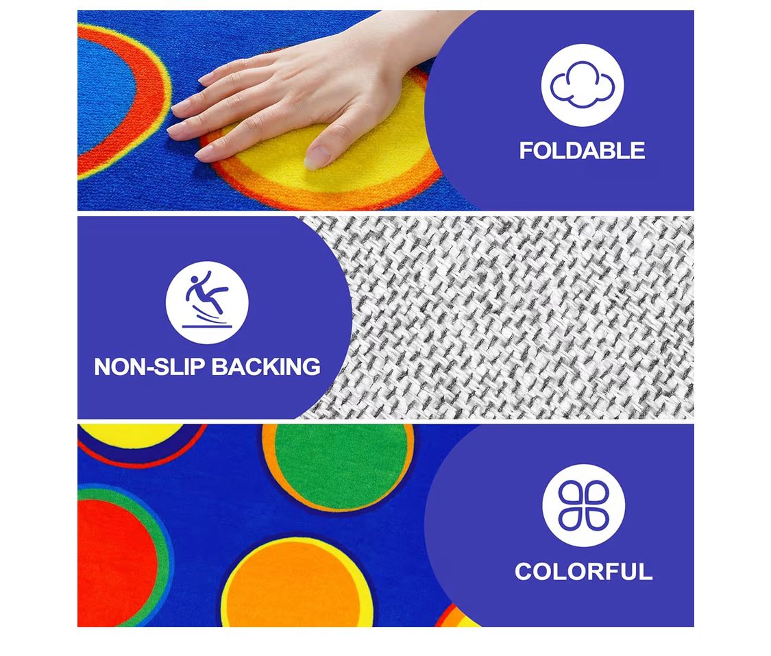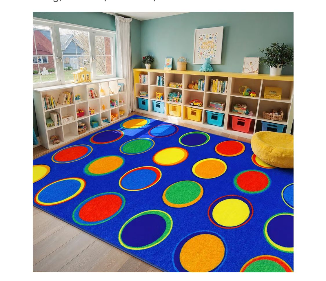 LIVEBOX Sitting Spots Kids Classroom Rug, Washable School Learning Area Rugs, Colorful Preschool Kids Classroom Carpet Non-Slip Playroom Mat for Daycare Learning, 13'x7'5"(Seats-24)