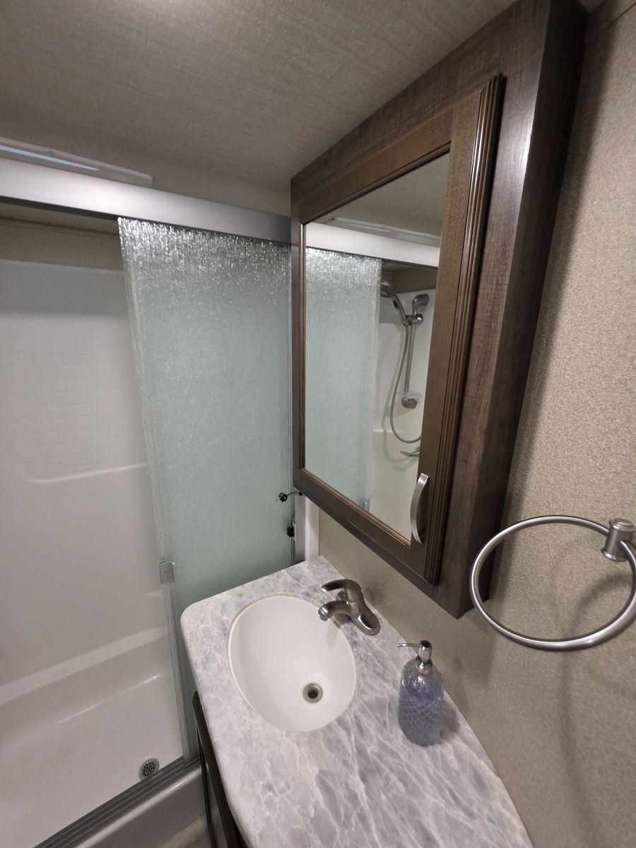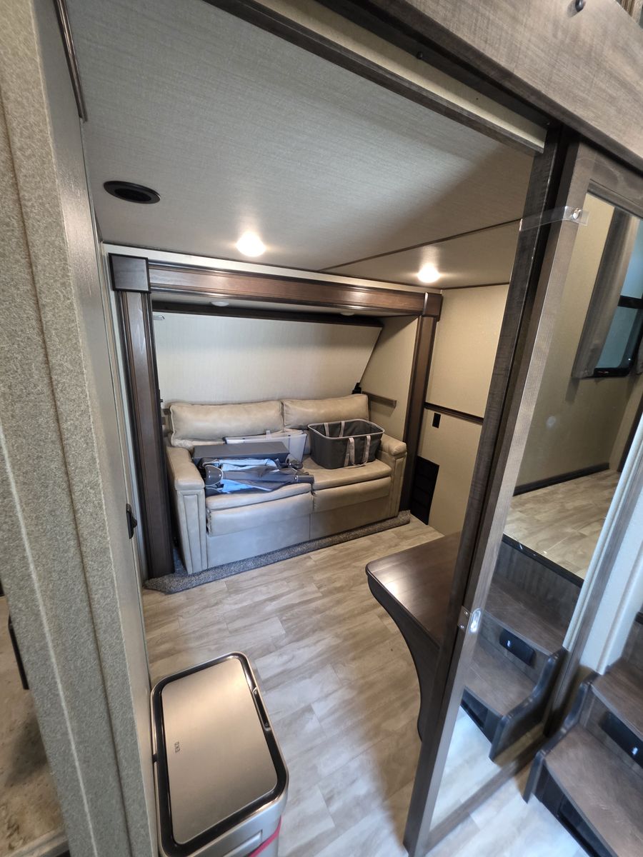 Experience the ultimate blend of luxury and utility. This 2020 Solitude features the highly sought-after mid-bunk suite, making it perfect for digital nomads needing a quiet office or families requiring an extra bedroom.