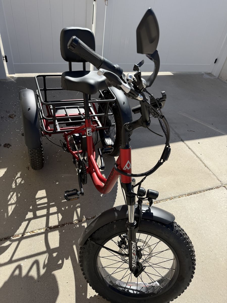 2026 Addmotor E-trike with several upgrade add-ons and only 10 miles. Comes with upgraded seat with back support ($60.00 value), cell phone holder, and Tannus Armour Tire Liners (to help prevent flats) ($198.00 value). Retail worth $2265.00. 750 watt motor, payload 300 lbs,, 65 miles per charge ( depending on how much assist is used )cash only if the ad is up it is available