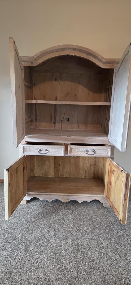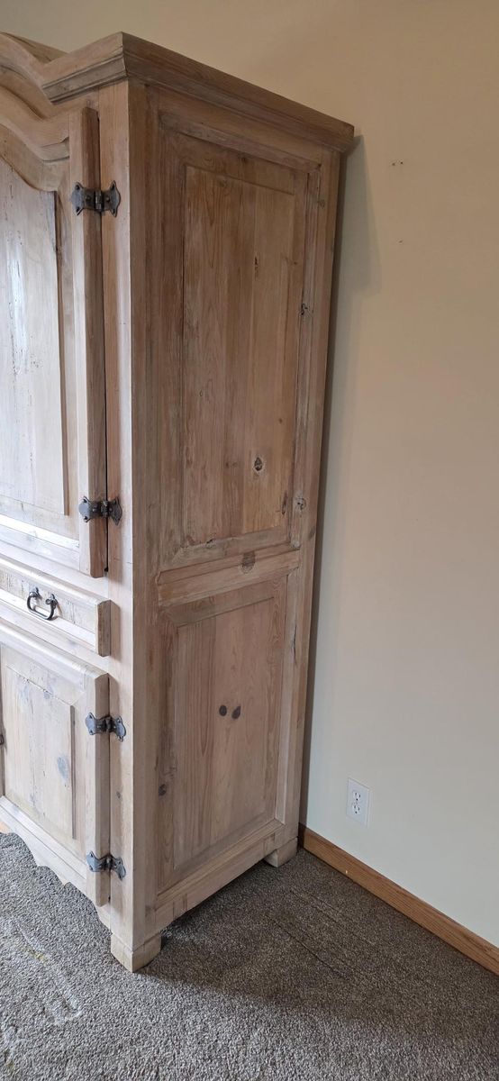 VenmoBeautiful Rustic Pine White washed Wood Armoire. White washed. Selling due to moving. 39 inches wide, 28 inches deep and 80 inches tall
