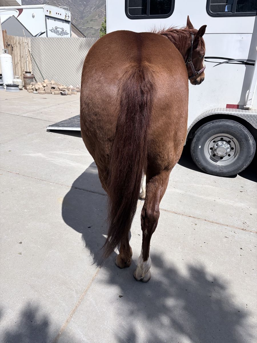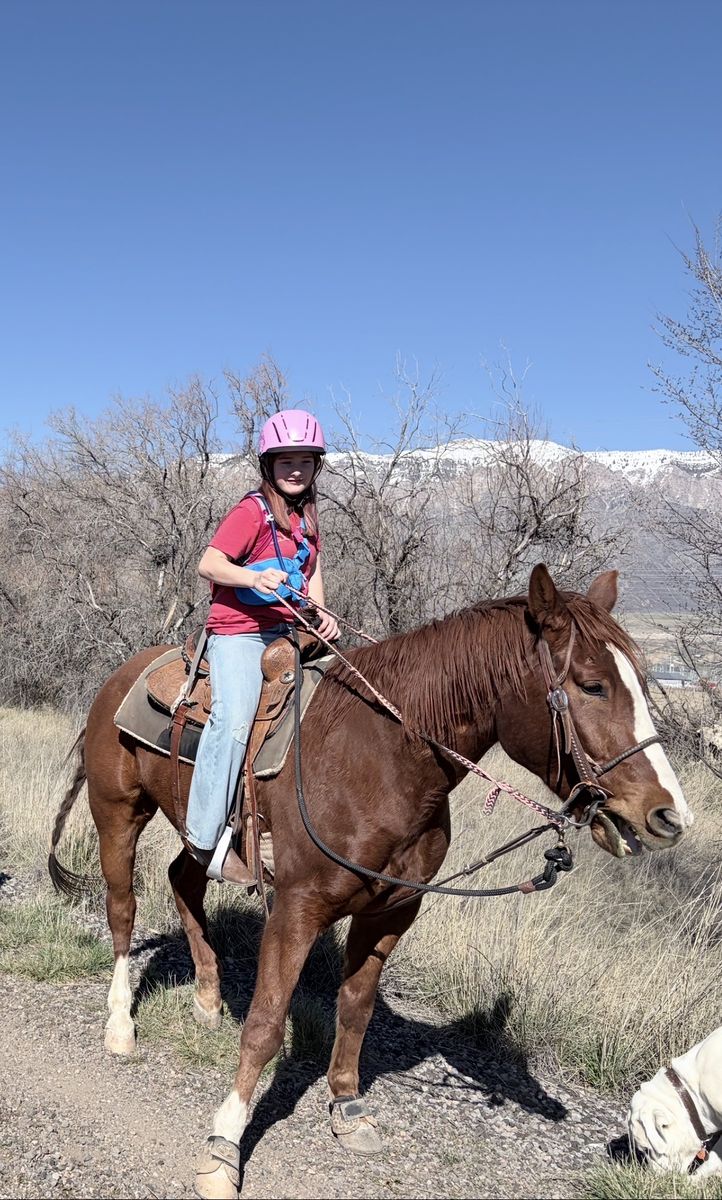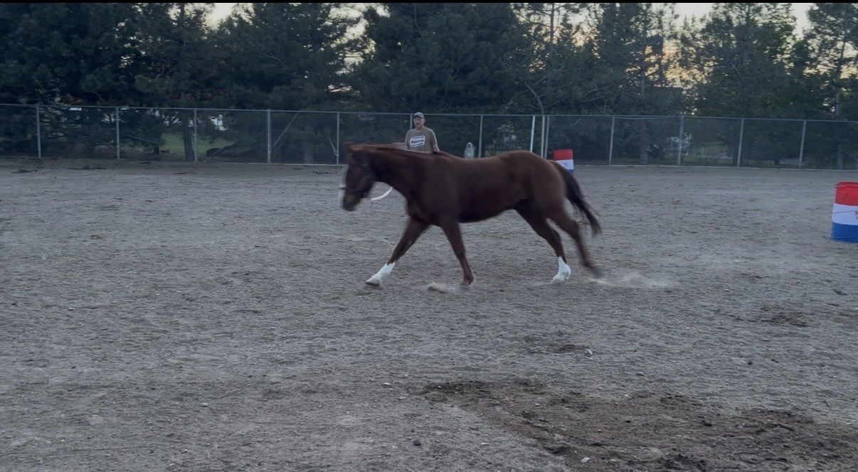 Rooster is a experienced gelding with a history of competing in various events, including barrels, poles, and roping. He’s well-suited for 4H, rodeo, jackpots, ranch/cattle work, or as a companion horse. I have been using Rooster in my lesson program for a year now he does decent with kids but he works best with experienced riders.