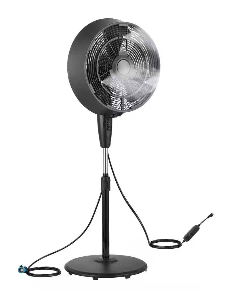 Pelonis 18 in. 3 Speeds Outdoor Misting Pedestal Fan in Black with 80Β° Oscillation 1600 CFM for up to 500 sq. ft